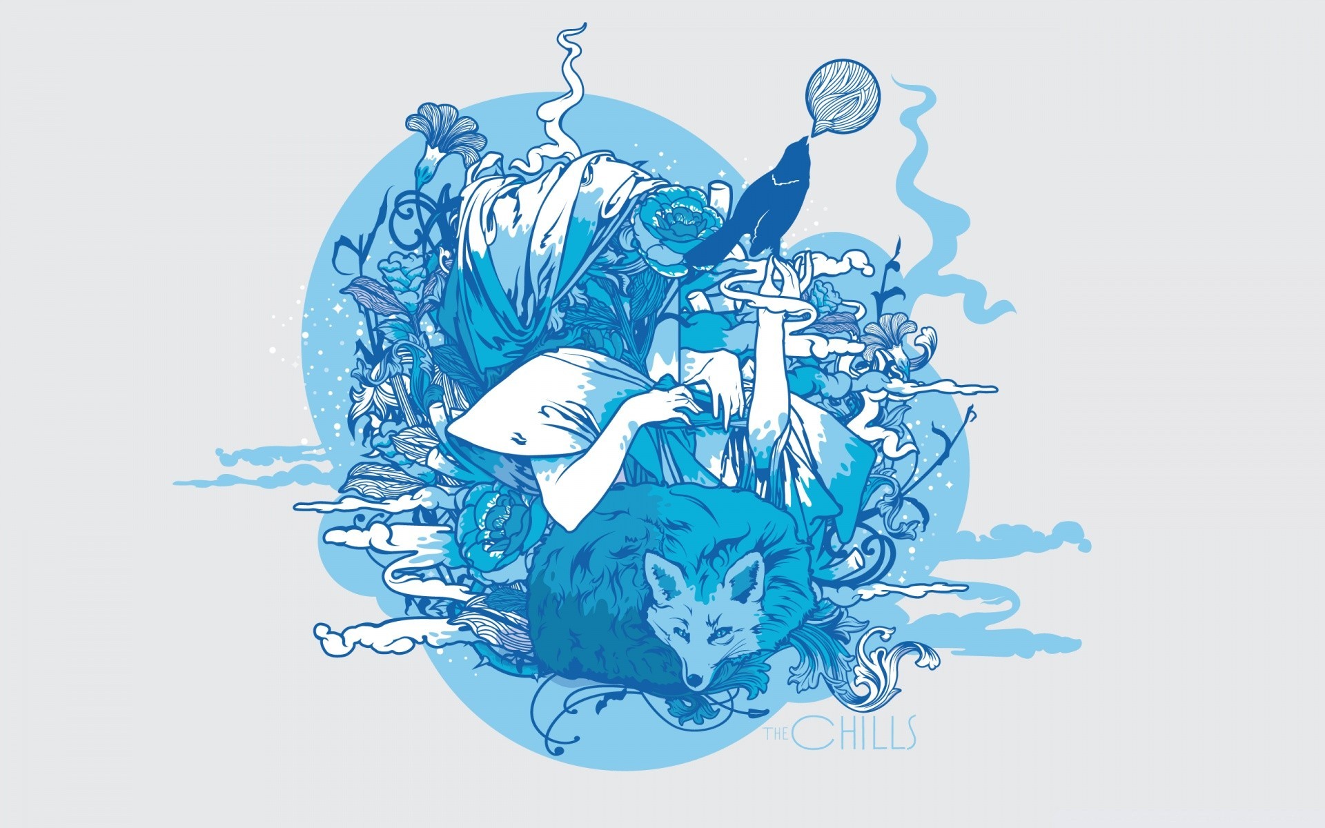 Abbildung in Form eines Fuchses, eines Vogels und einer weiblichen Hand