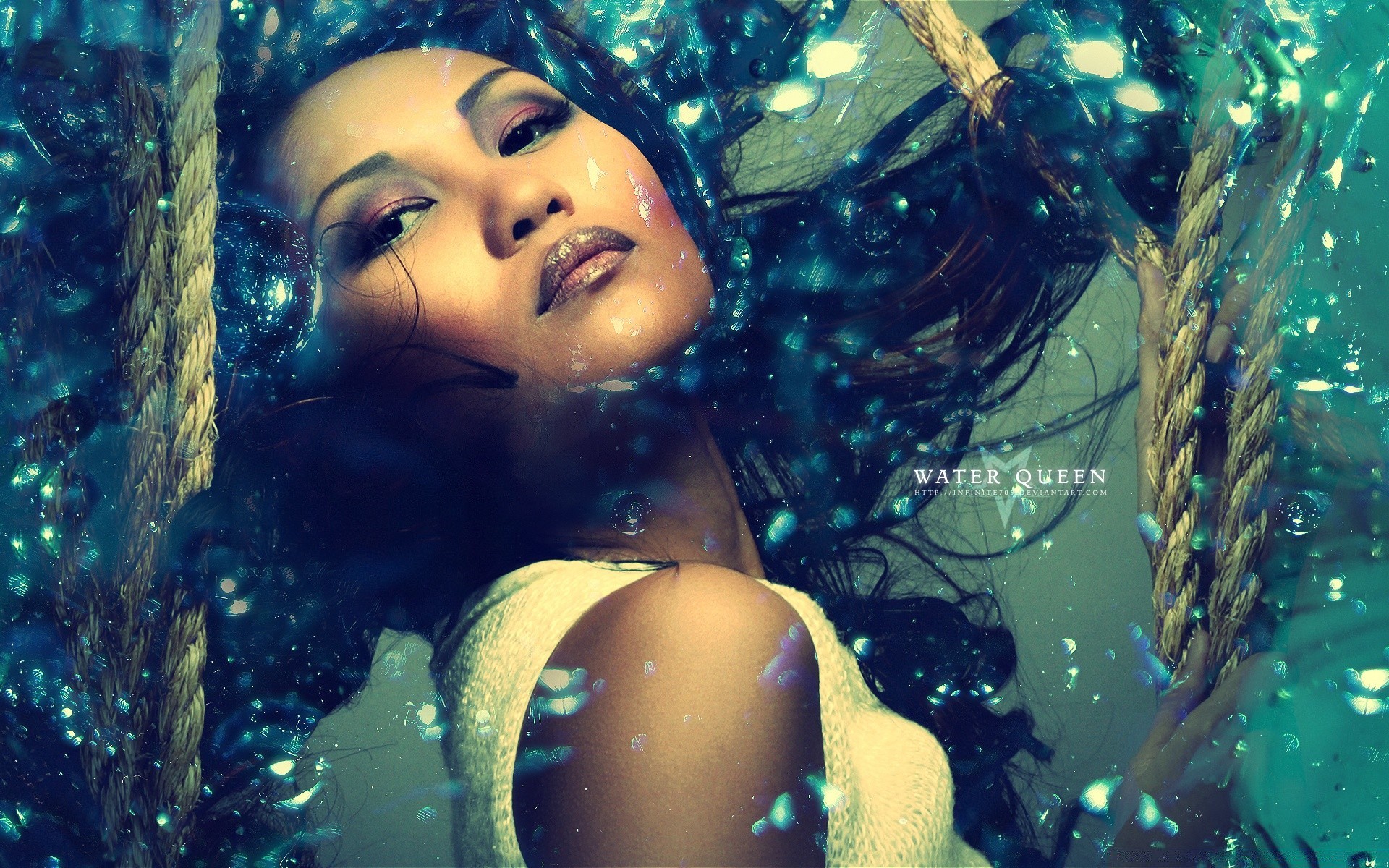 Asiatische Frau auf Meer Hintergrund mit Seilen