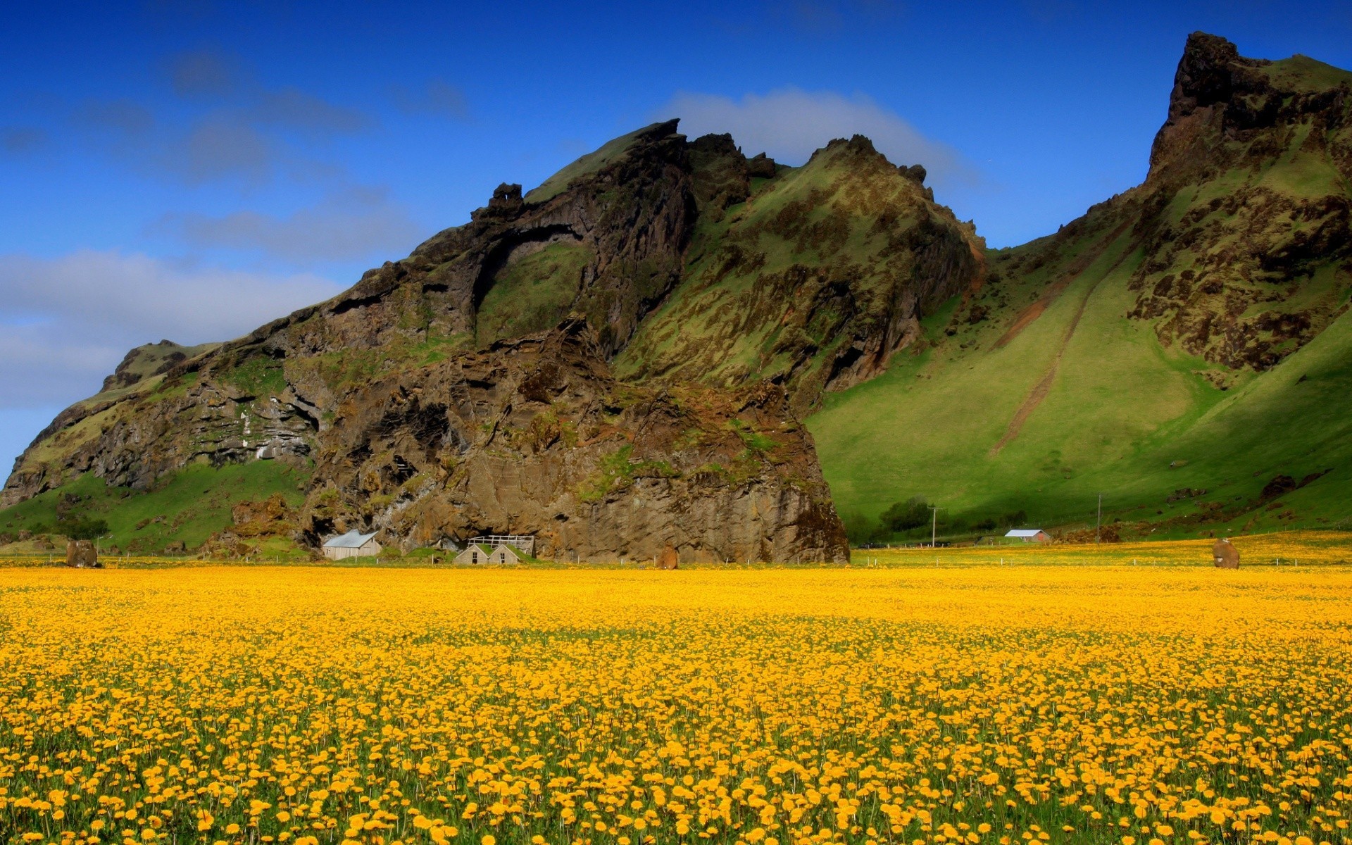 Schöne Natur von blühenden Feldern und Bergen