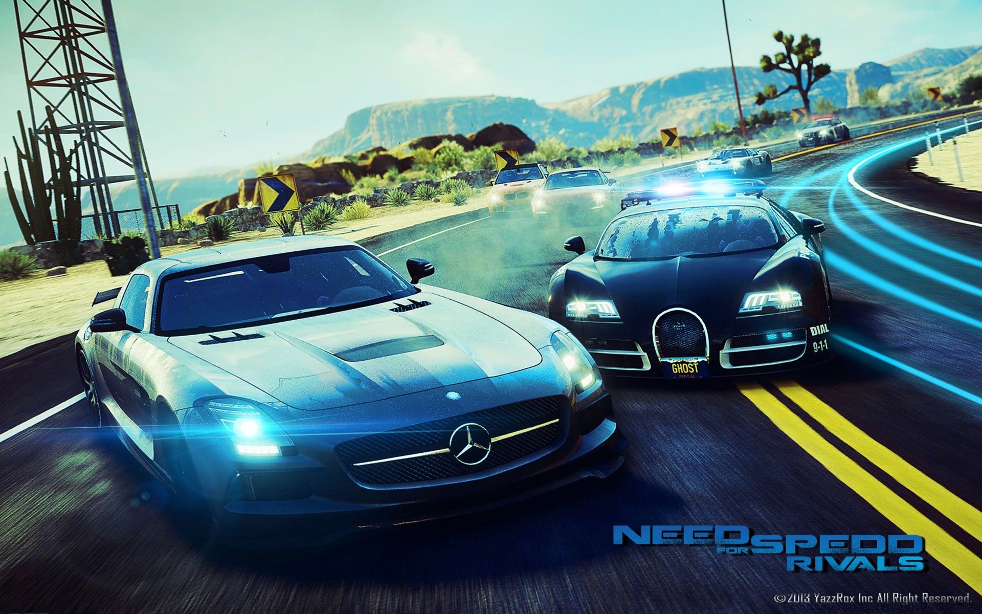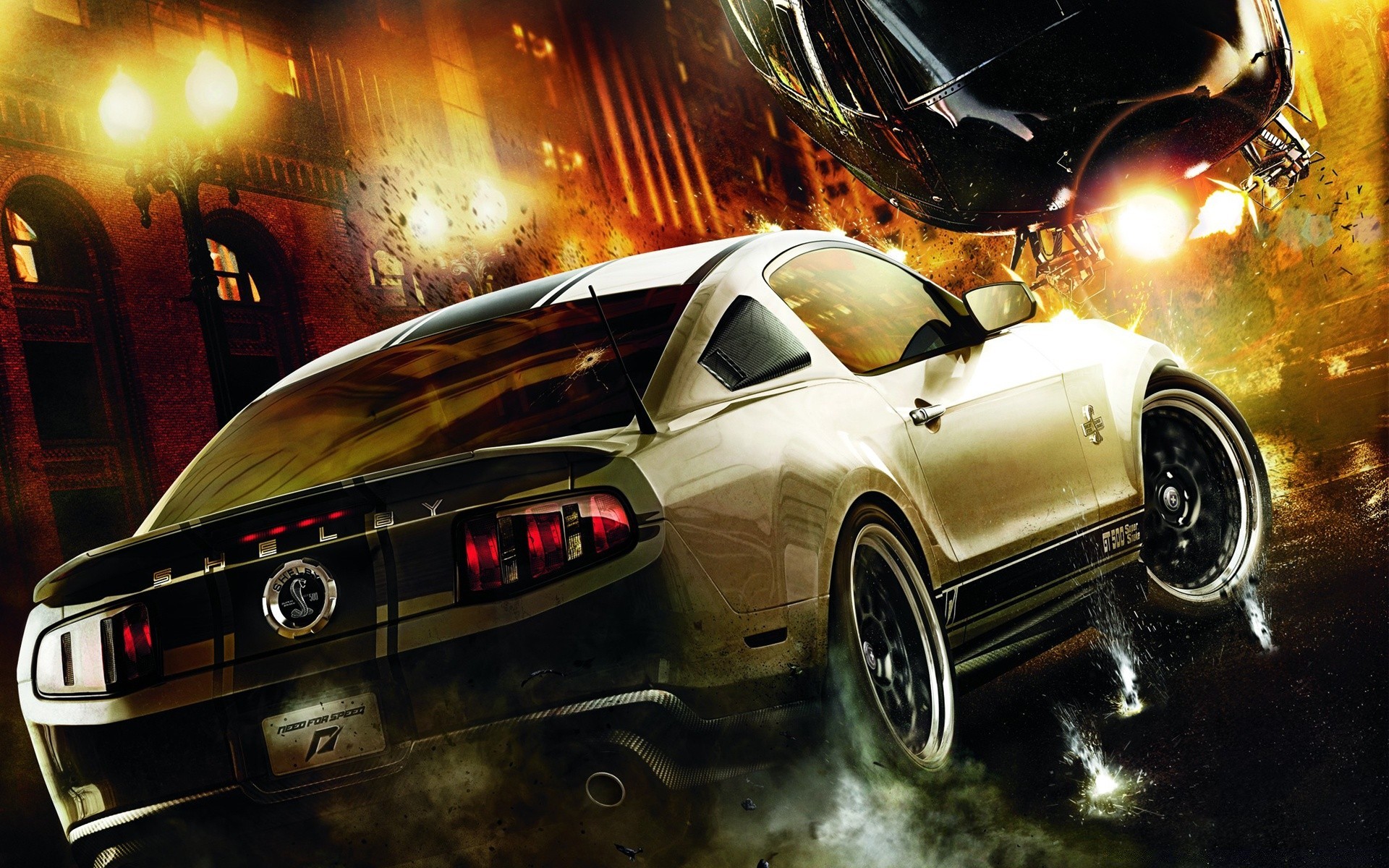 Poster aus dem Spiel mit einem Auto, das auf der Autobahn rast