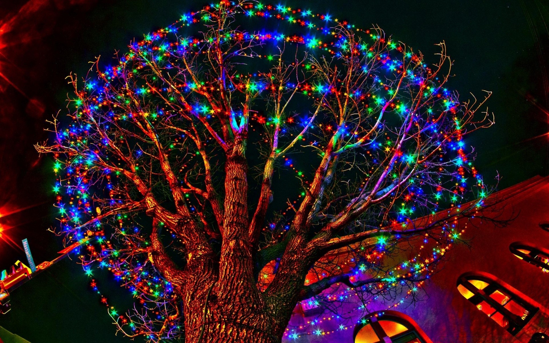 Weihnachtsbaum funkelt mit lichtern auf dem stadtplatzWeihnachtsbaum funkelt mit Lichtern auf dem Stadtplatz