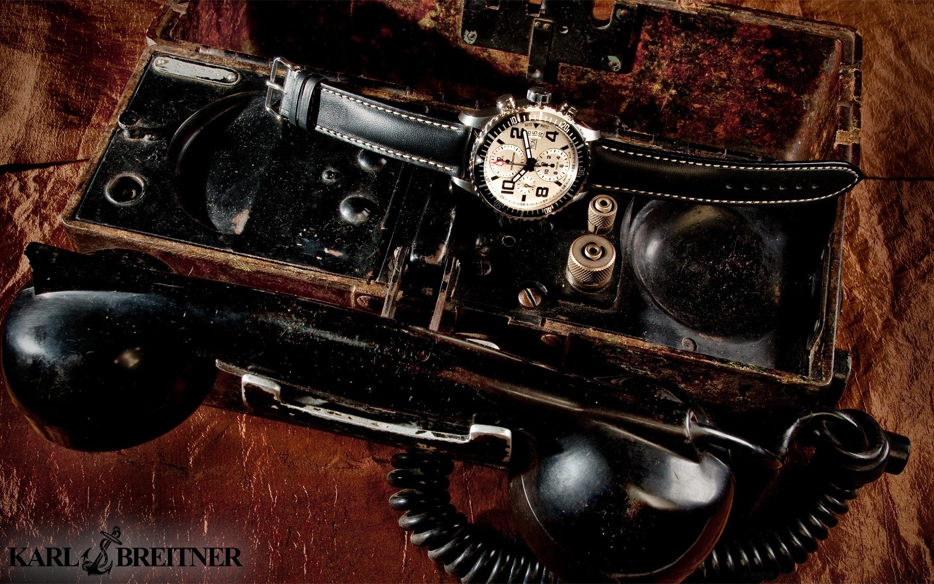 Vintage-Artikel auf dunkelbraunem Hintergrund