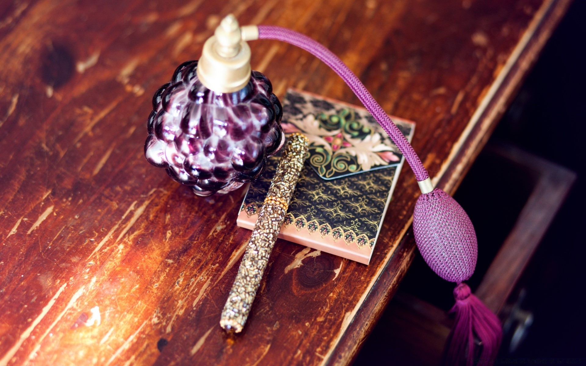 Schönes lila Parfüm auf dem Tisch