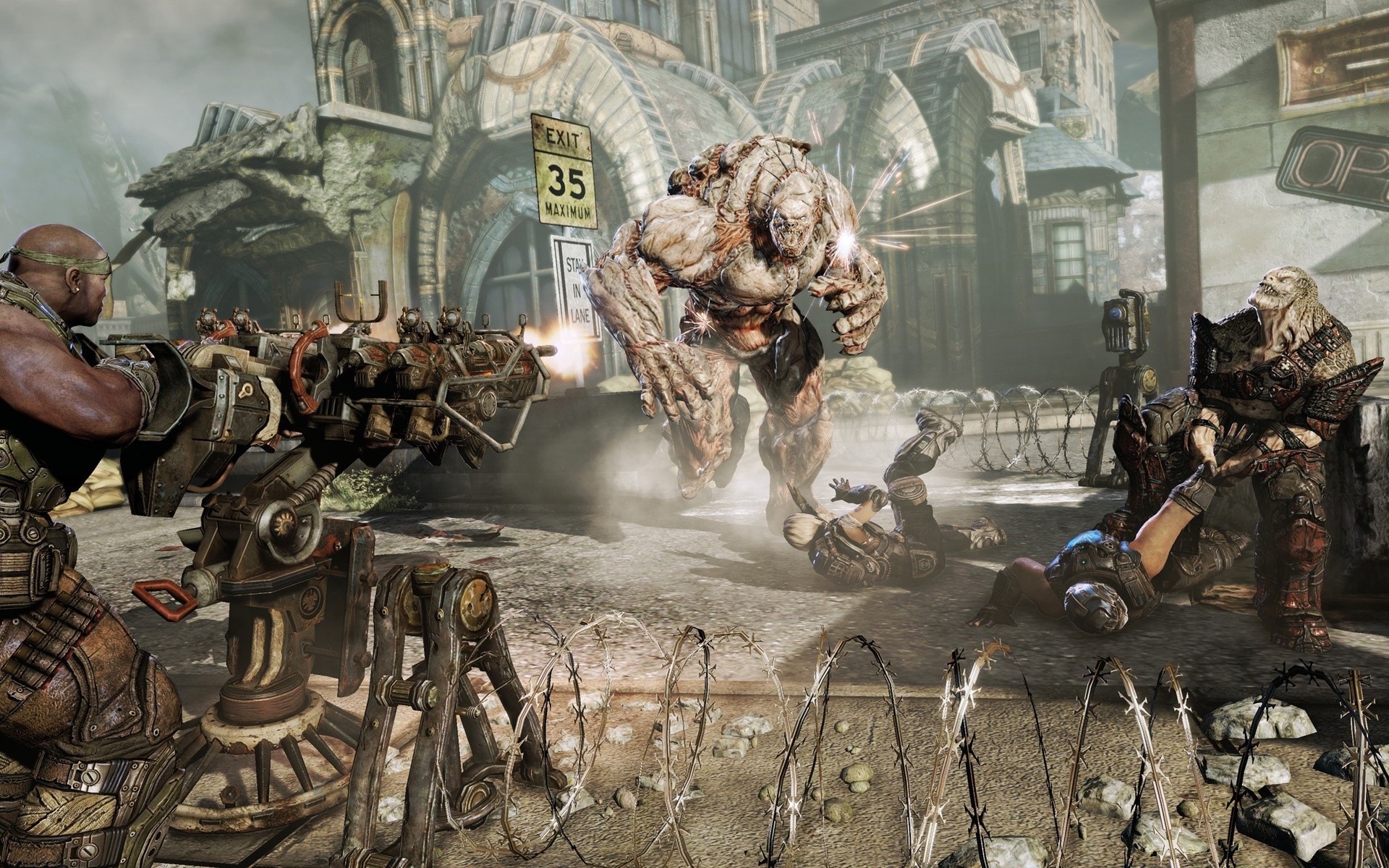 Ein stämmiger Mann und ein außerirdisches Monster