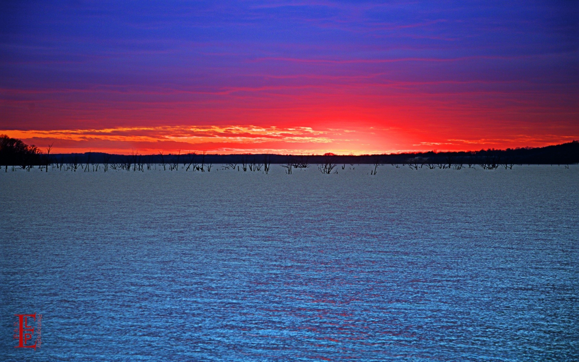 Erstaunlich schöner Sonnenuntergang vor dem Hintergrund des Wassers
