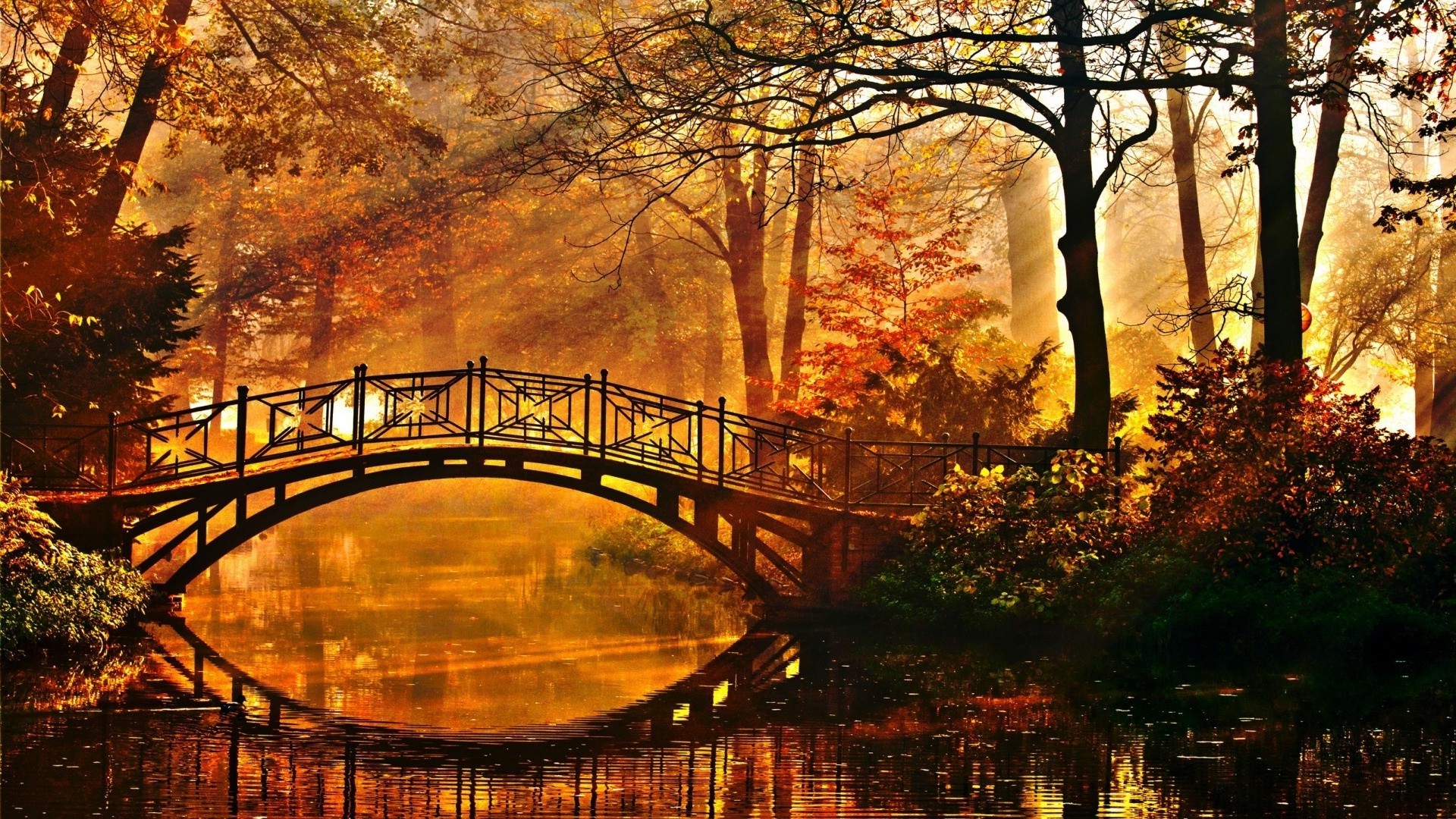 Schöner Teich vor dem Hintergrund des herbstlichen Sonnenuntergangs unter den Bäumen