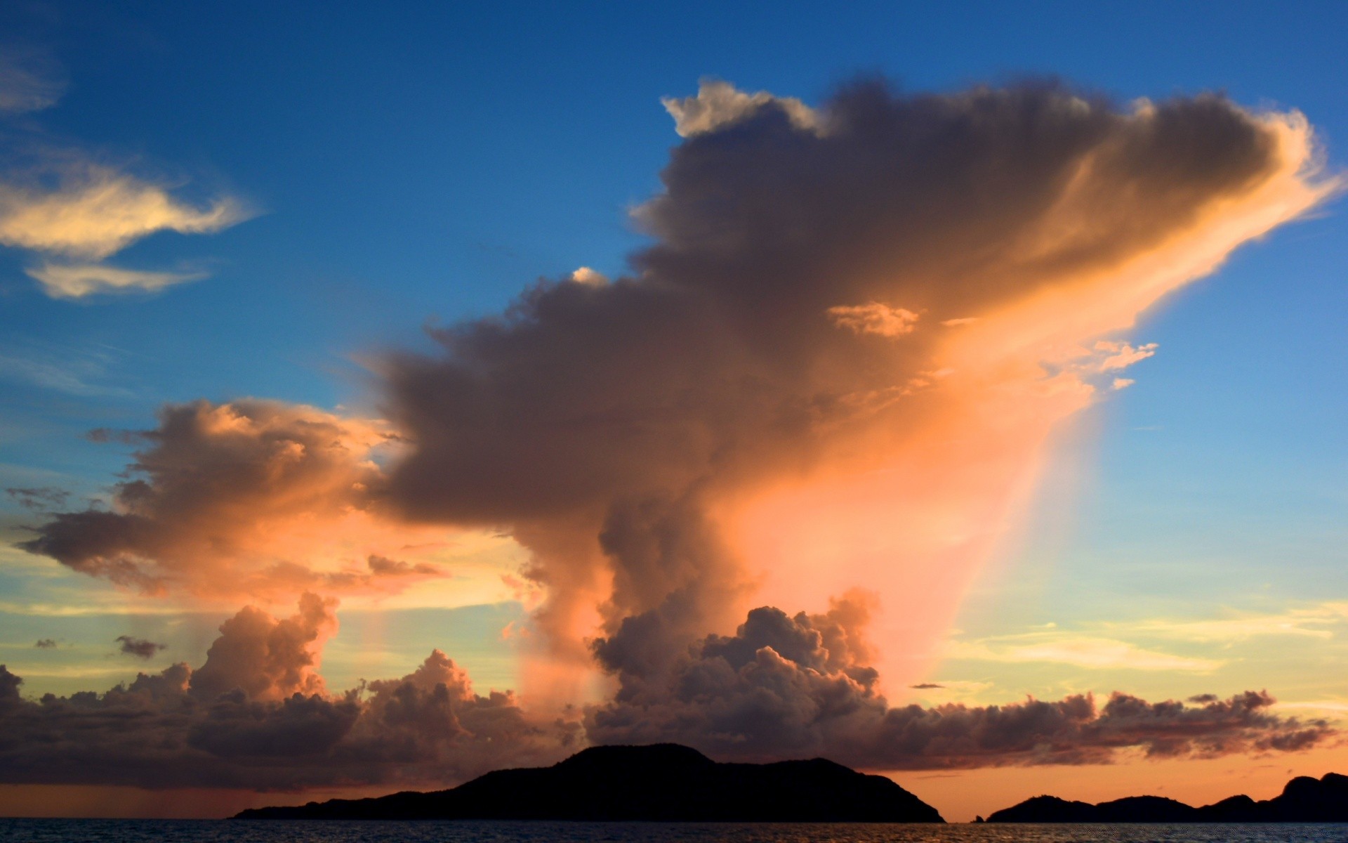Ein düsterer Sonnenuntergang vor dem Hintergrund des Meeres