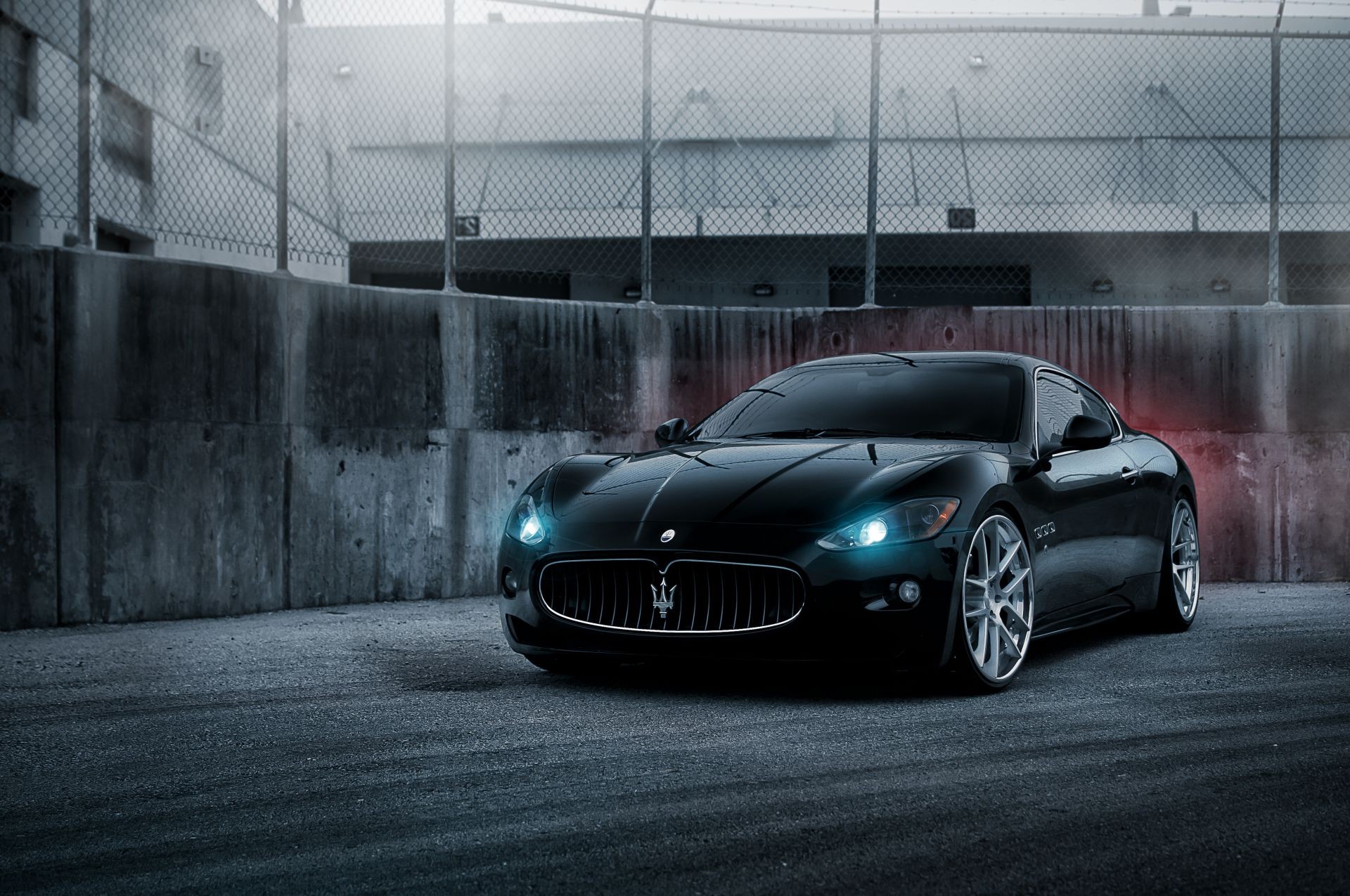 Sportwagen in der Stadt vor dem Hintergrund des Zauns