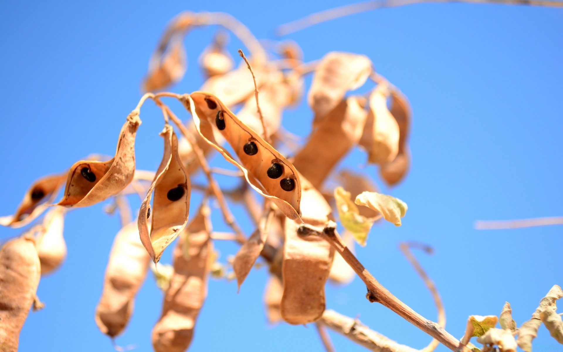 Ein vertrockneter einsamer Baum vor dem Hintergrund des Nachthimmels