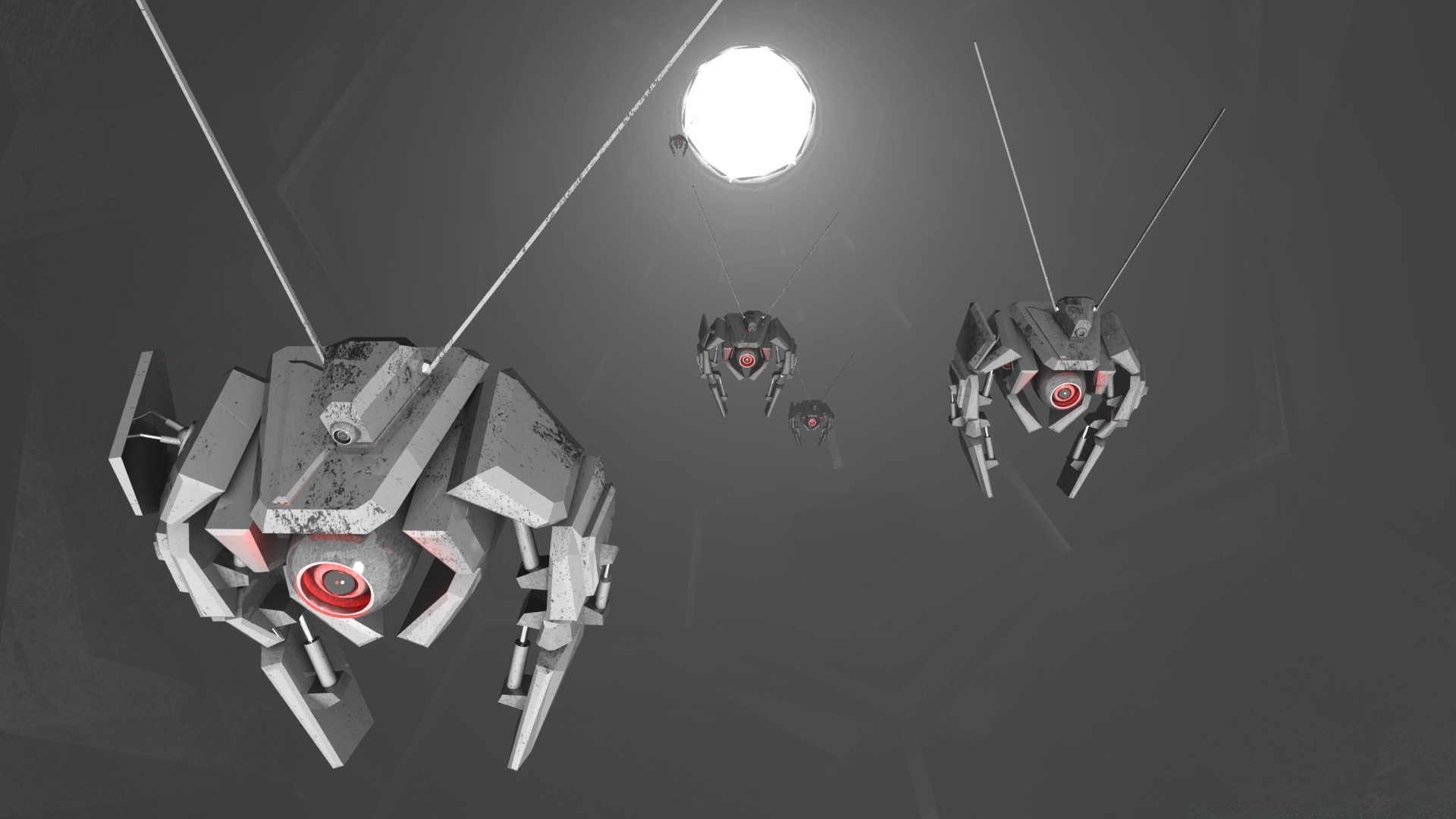 Eine Sammlung von roten Robotern. Grafische Bilder für den Desktop