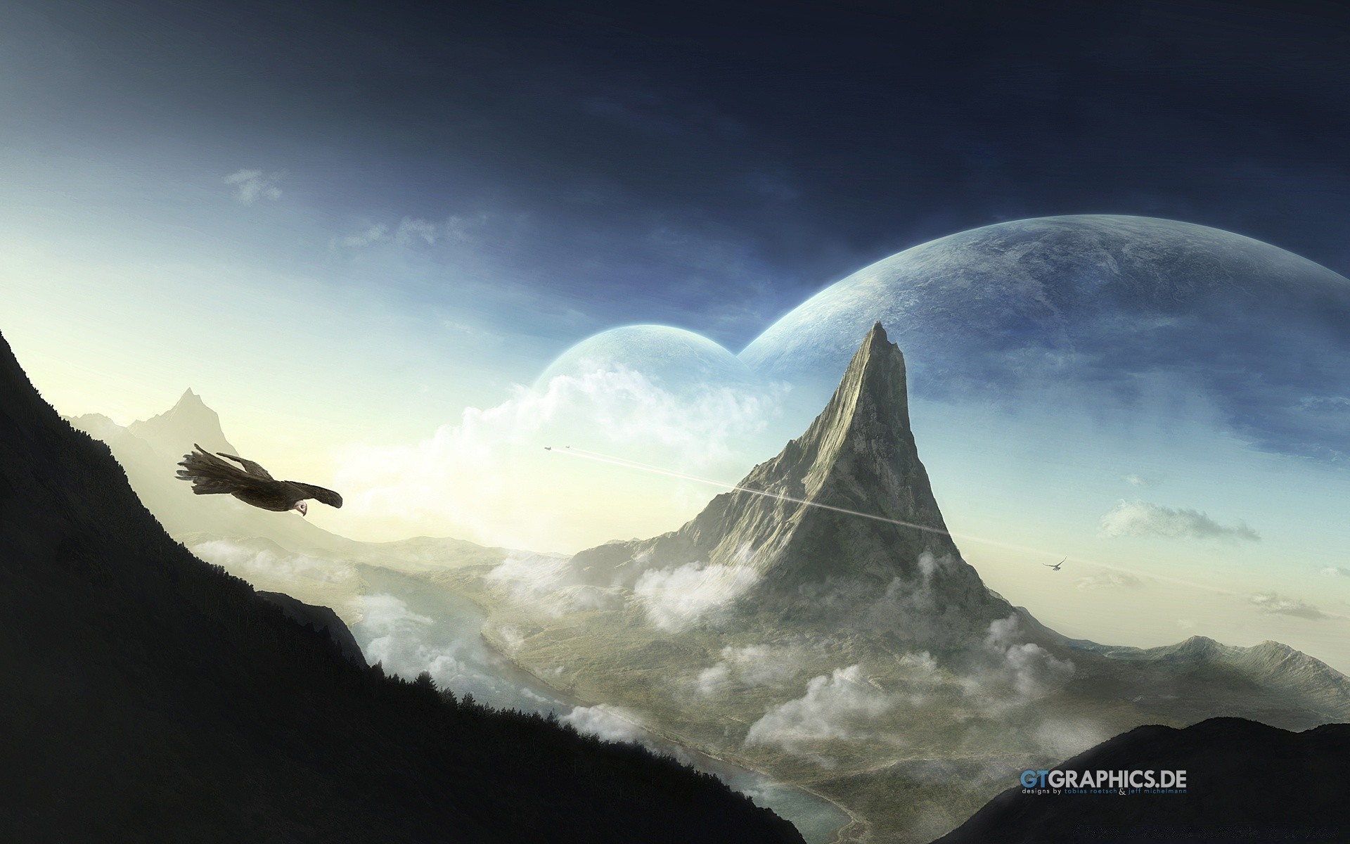 Schwebender Vogel vor dem Hintergrund der Bergklippen