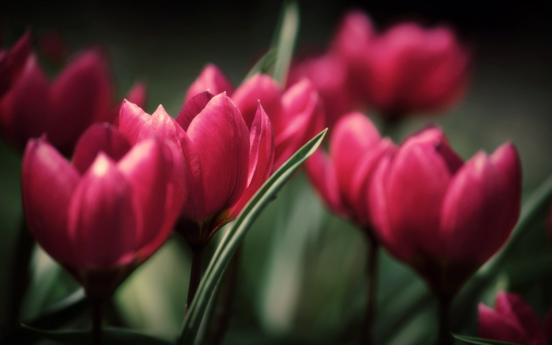 Rosa Schwertlilien in einem abgedunkelten Garten