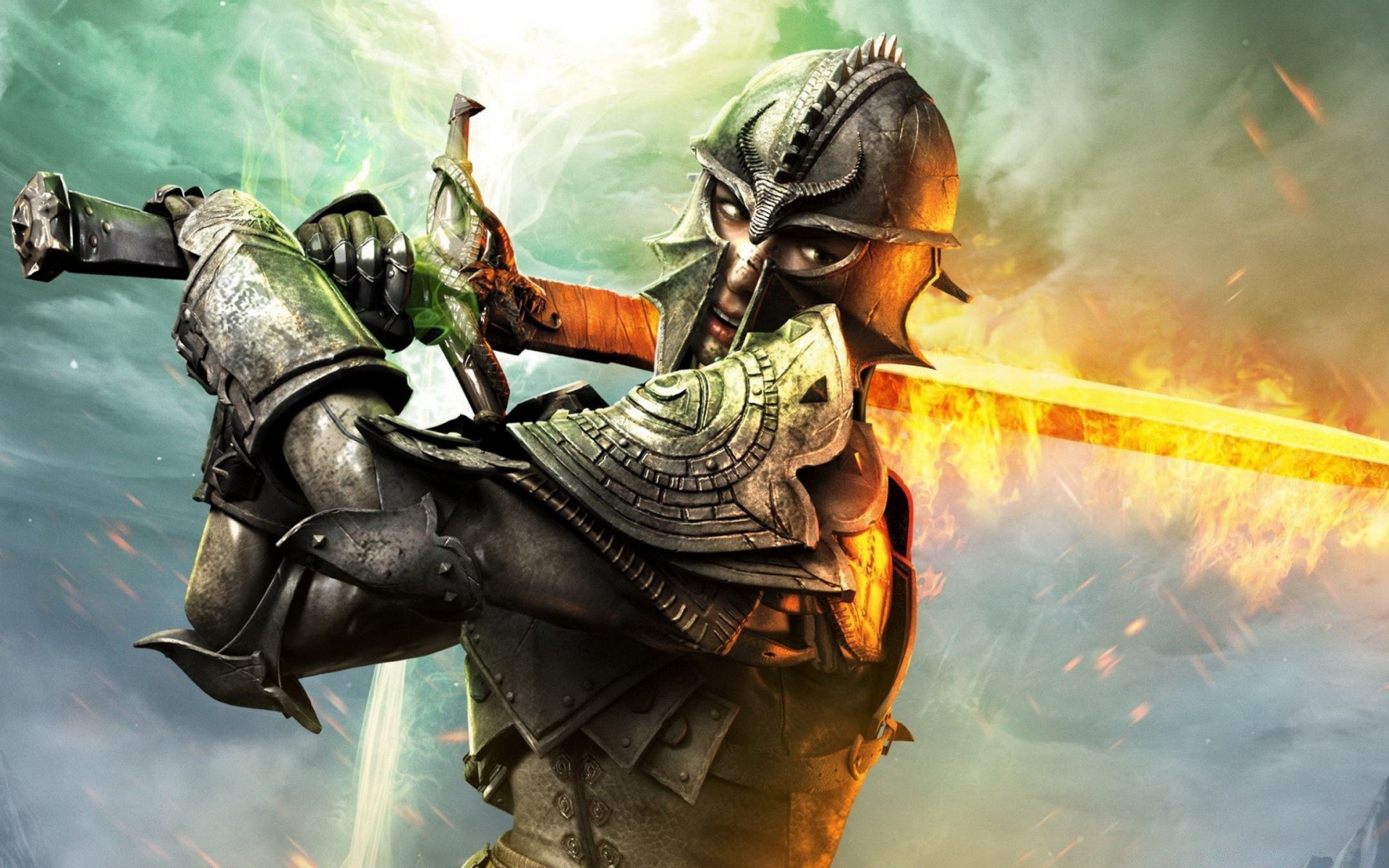 Der Krieger wird im Kampf mit einem Schild vor der Flamme des Drachen geschlossen