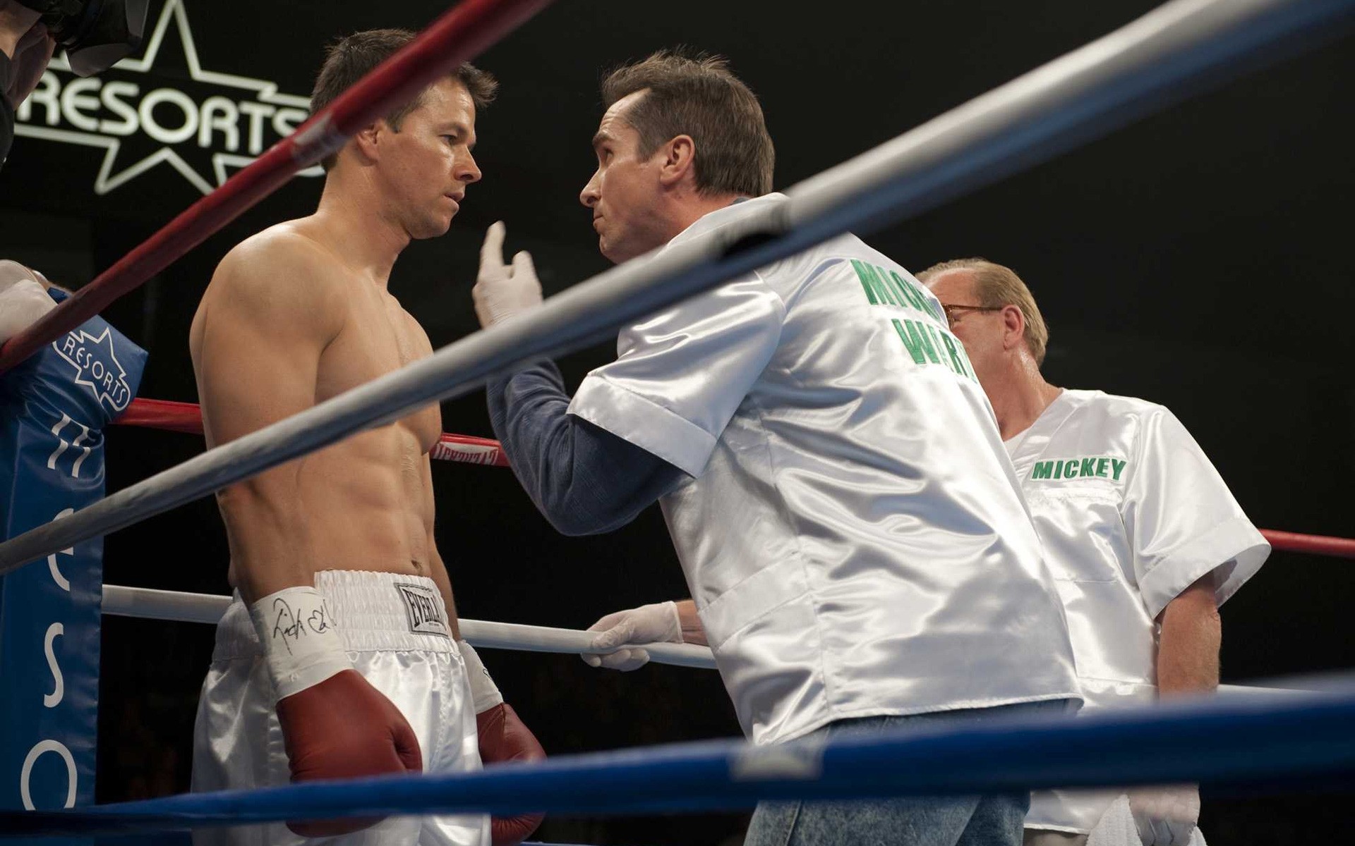 Boxring, kämpfer bereiten sich auf den kampf vor, sprechen sie mit dem trainer
