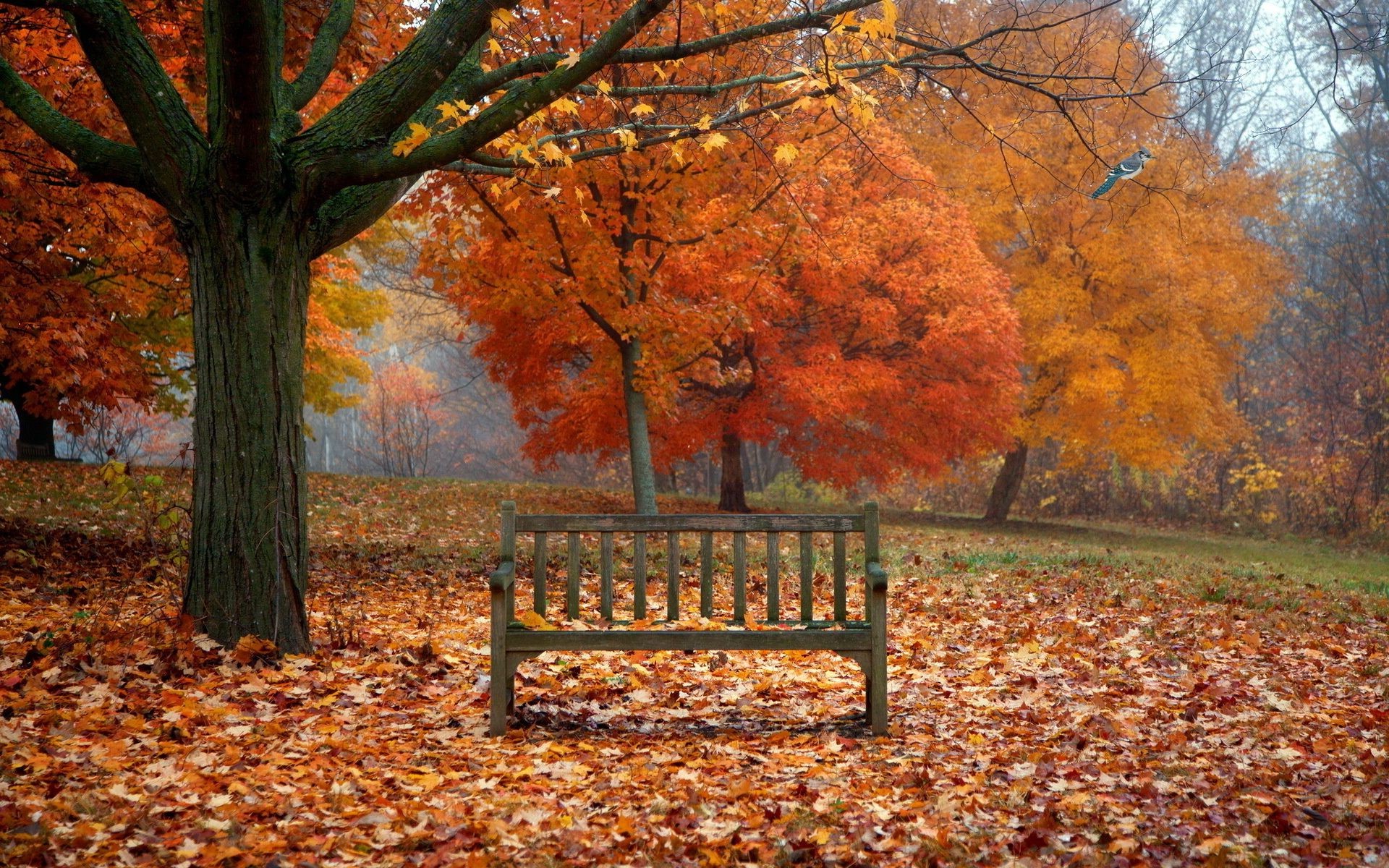 Bank im Herbstpark