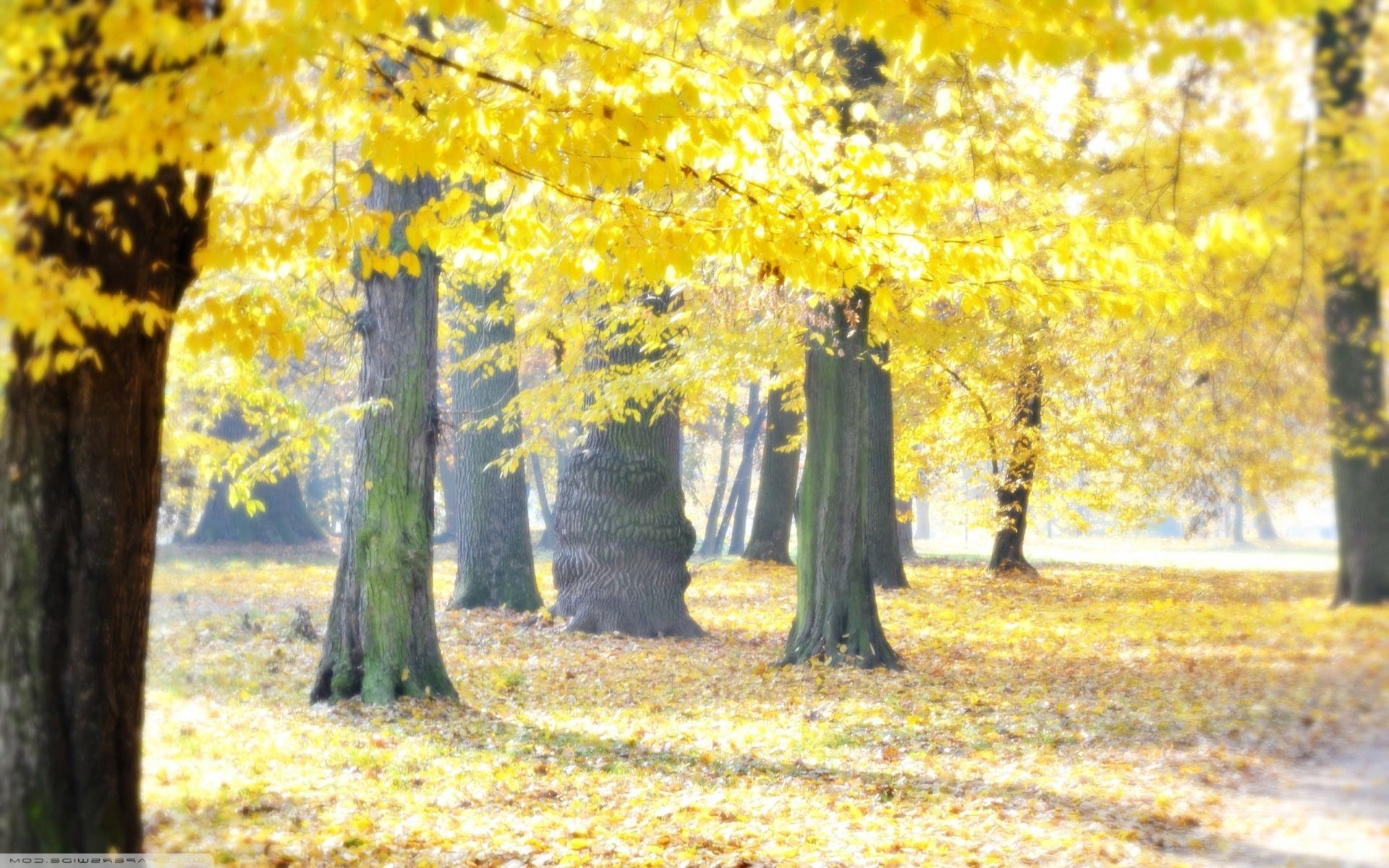 Herbstwald. Bäume im Herbst. Laub auf dem Weg