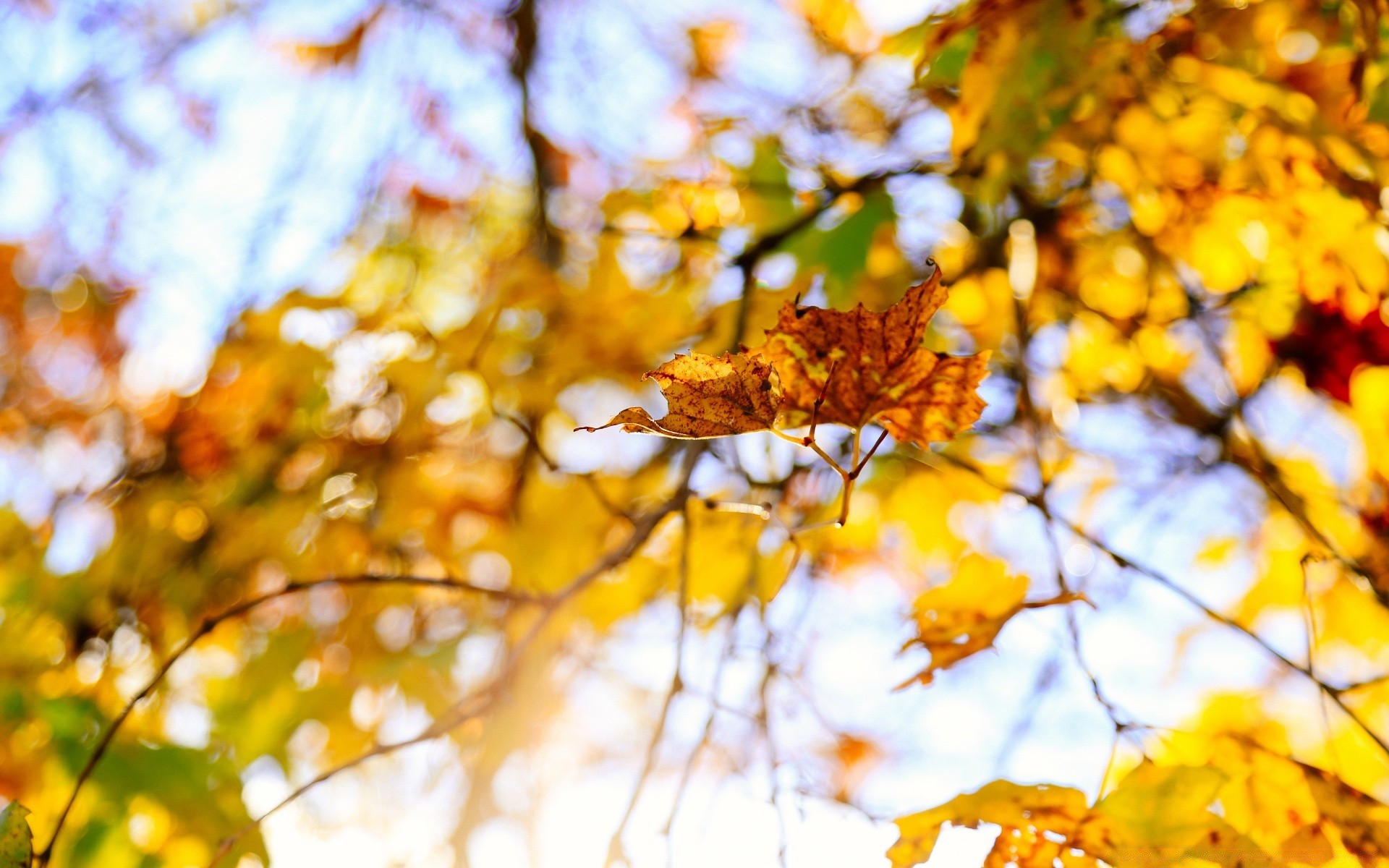 Heller Himmel. Schöne Herbstblätter