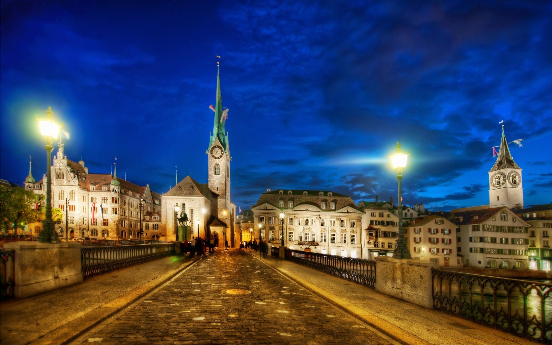 Blick auf die alte Stadt mit dem Fluss bei Sonnenuntergang