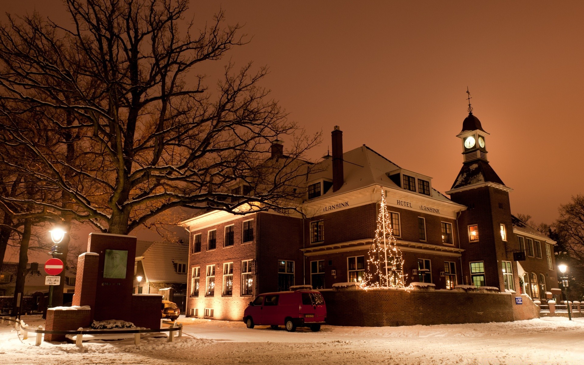 Winterlandschaft in den Niederlanden. Hagelos Architektur