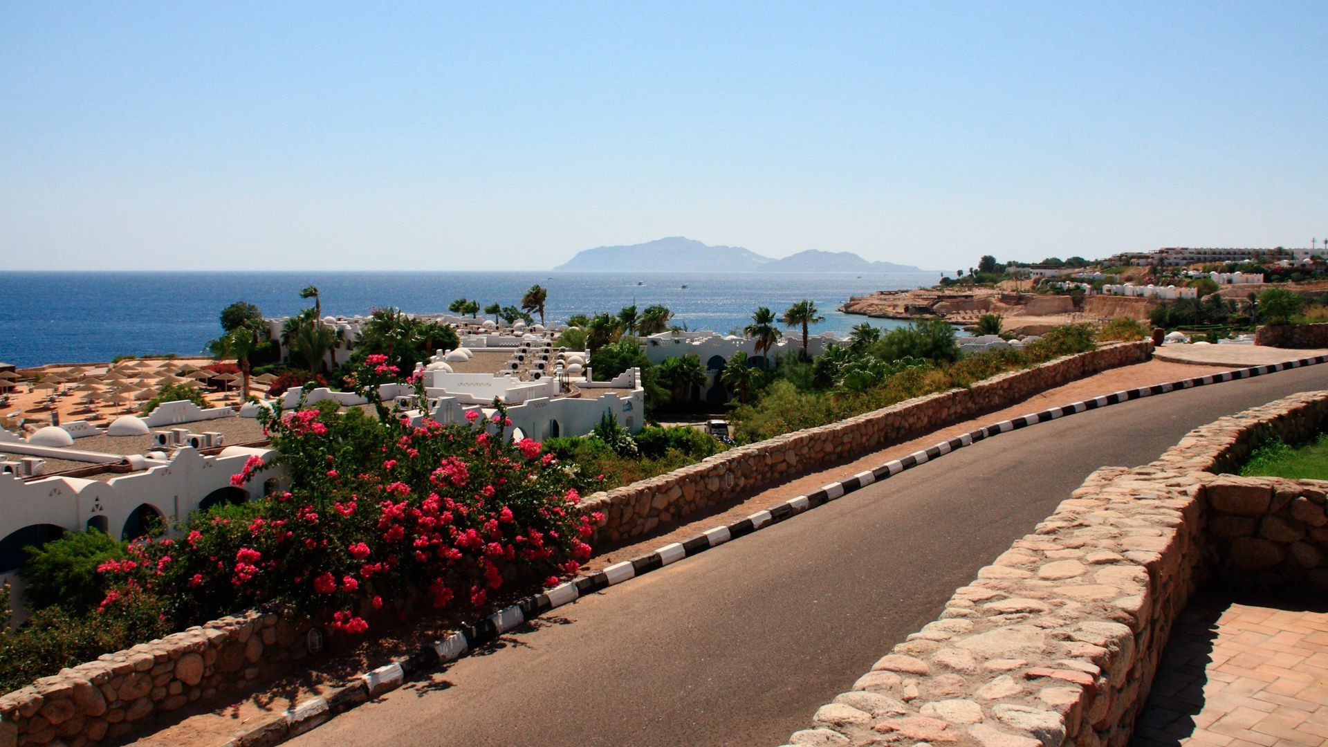 Die weißen wände einer wunderschönen stadt am meer bei sonnenuntergangDie weißen Wände einer wunderschönen Stadt am Meer bei Sonnenuntergang