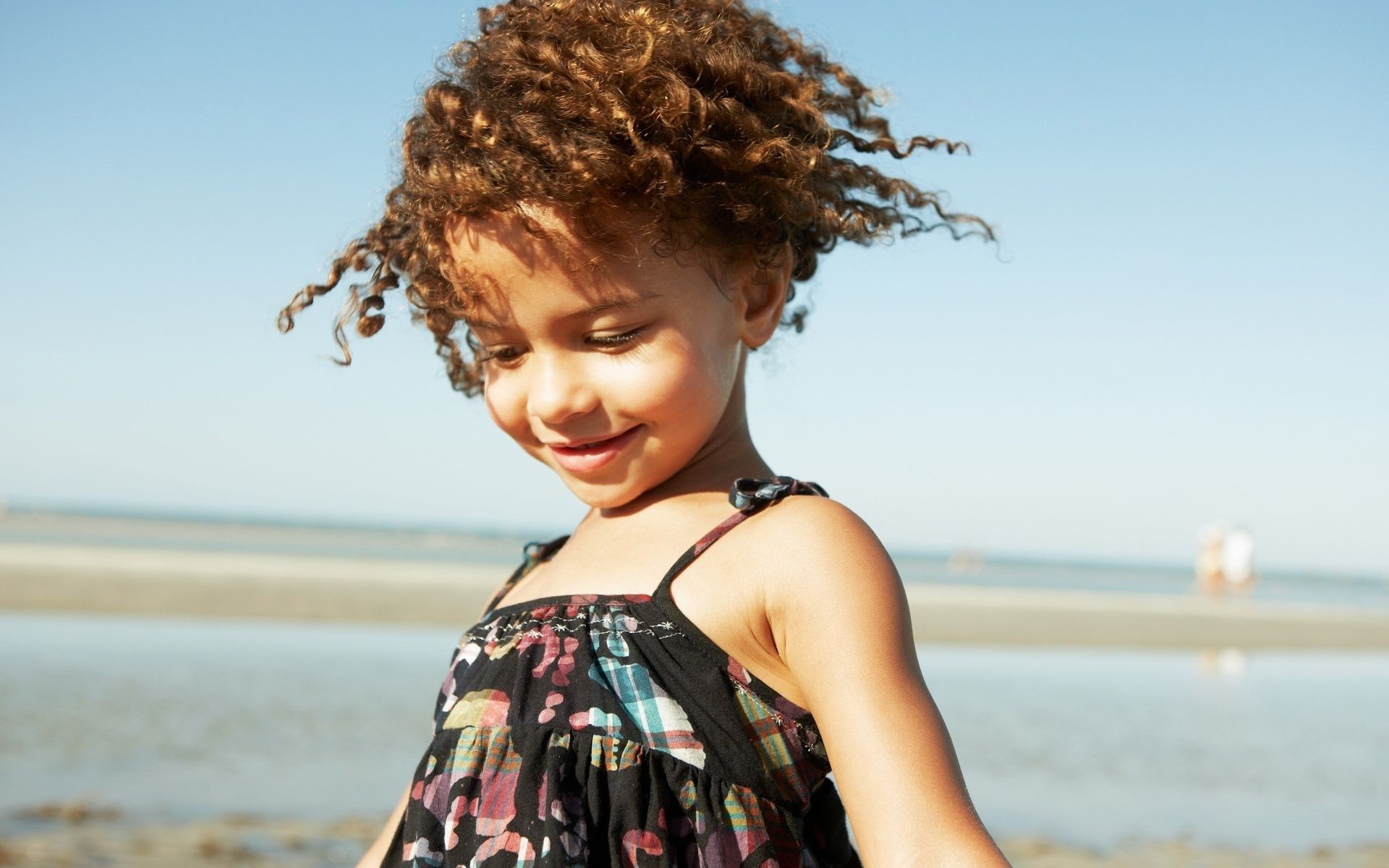 Die prinzessin des sommers ist ein lockiges mädchen am strand am meerDie Prinzessin des Sommers ist ein lockiges Mädchen am Strand am Meer
