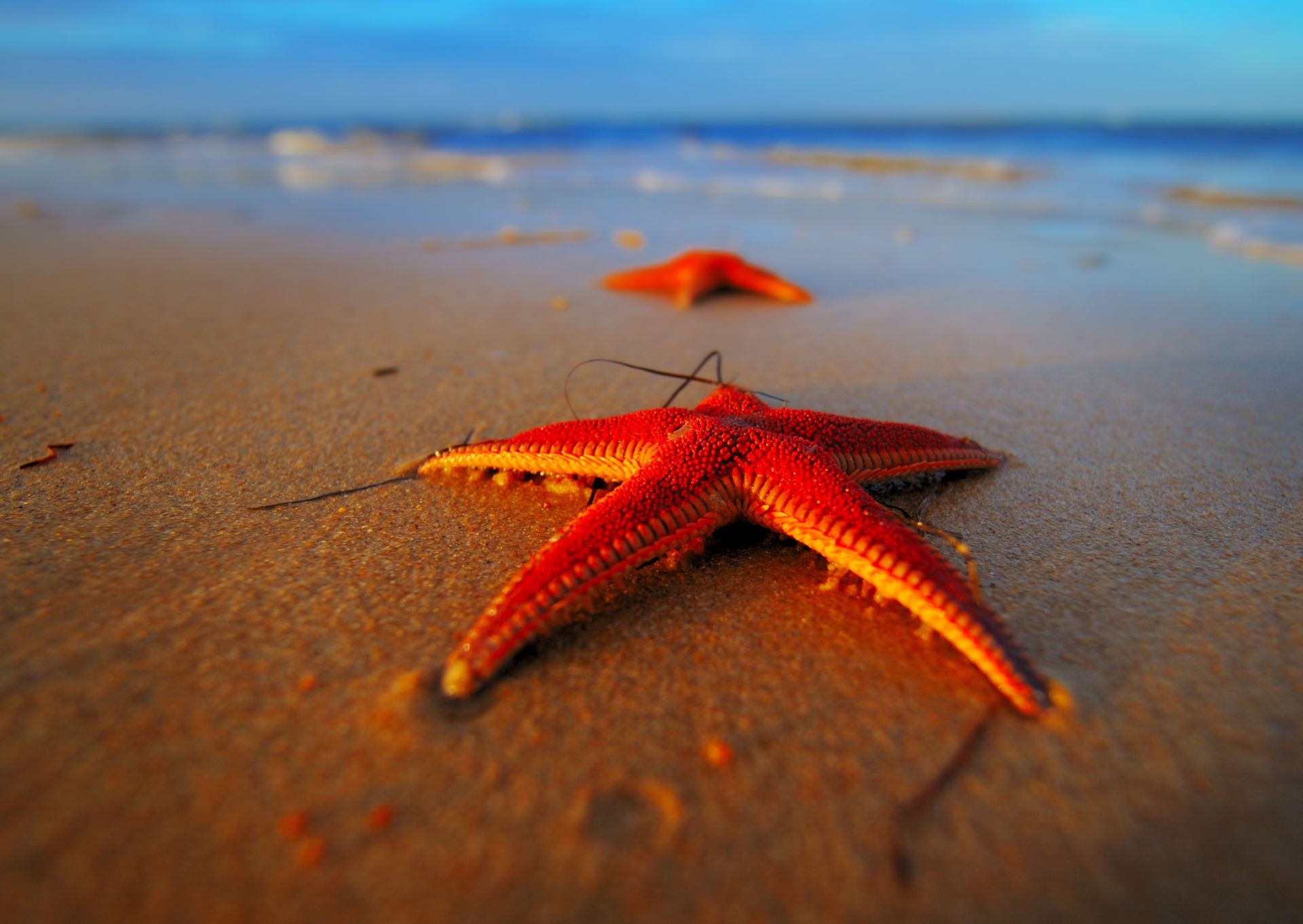 Nahaufnahme eines Seesterns am Strand. Meeresstrand