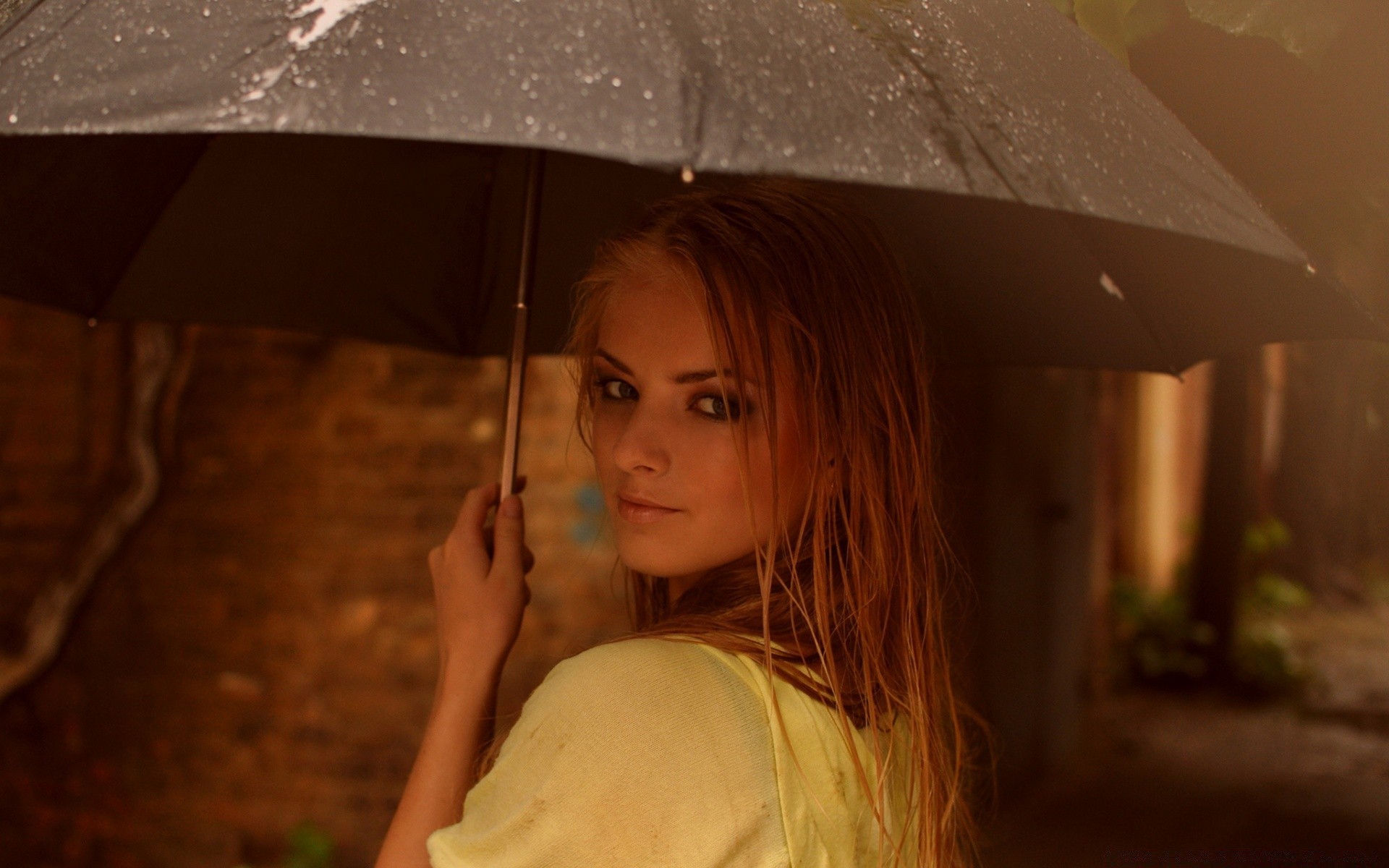 Am Strand unter einem Regenschirm