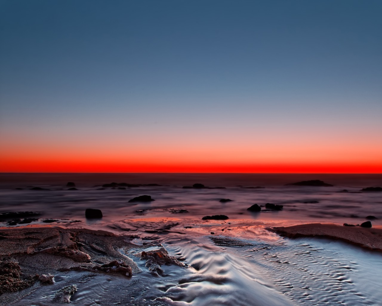 Orange Sonnenuntergang am felsigen Meer