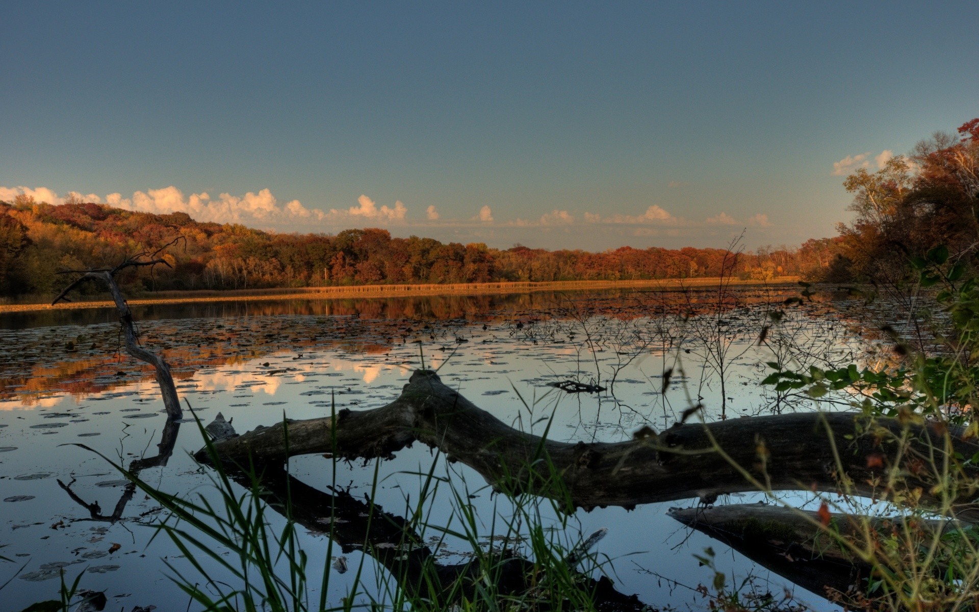 Reflexion des gegenüberliegenden Ufers im Fluss