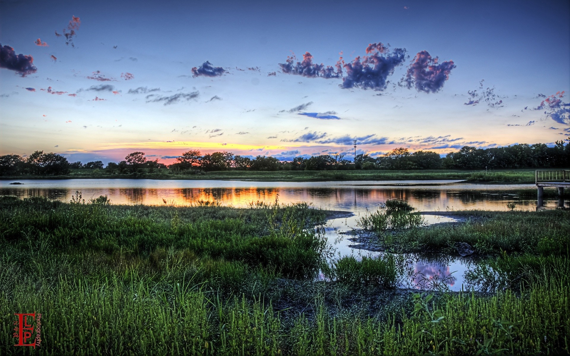 Das Meer bei Sonnenuntergang. Licht vom Leuchtturm