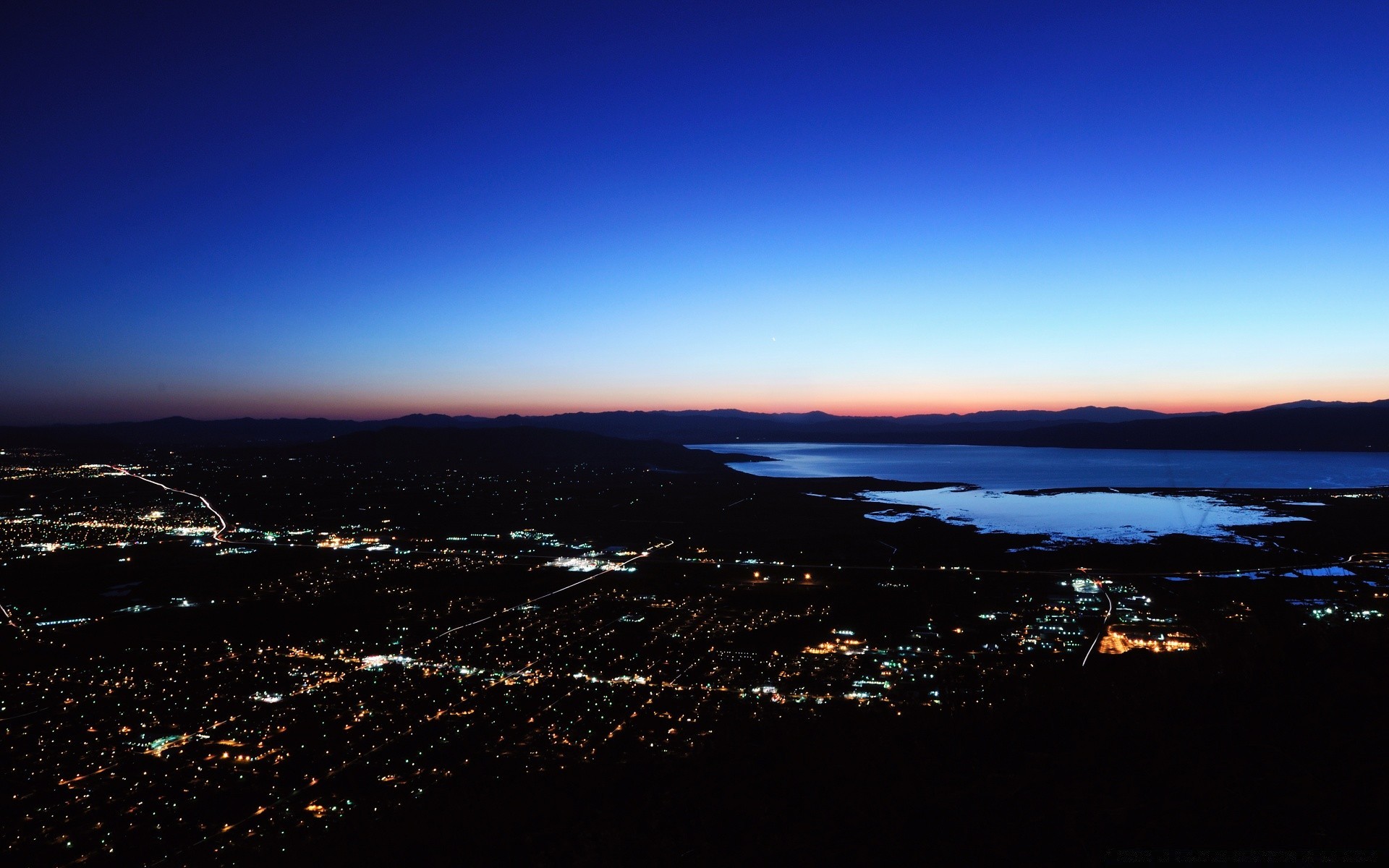 Die brücke führt bei untergehender sonne in die stadtDie Brücke führt bei untergehender Sonne in die Stadt