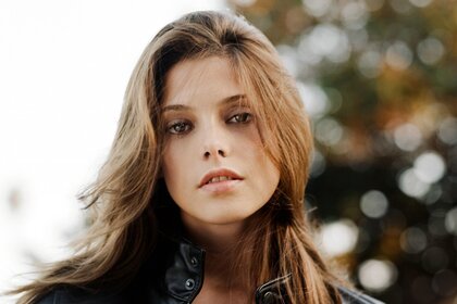 Ein müder blick eines mädchens auf einem vagen hintergrundEin müder Blick eines Mädchens auf einem vagen Hintergrund