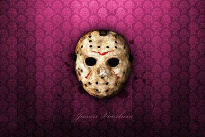 Die maske hängt an der wand vor dem hintergrund der barden-tapeteDie Maske hängt an der Wand vor dem Hintergrund der Barden-Tapete