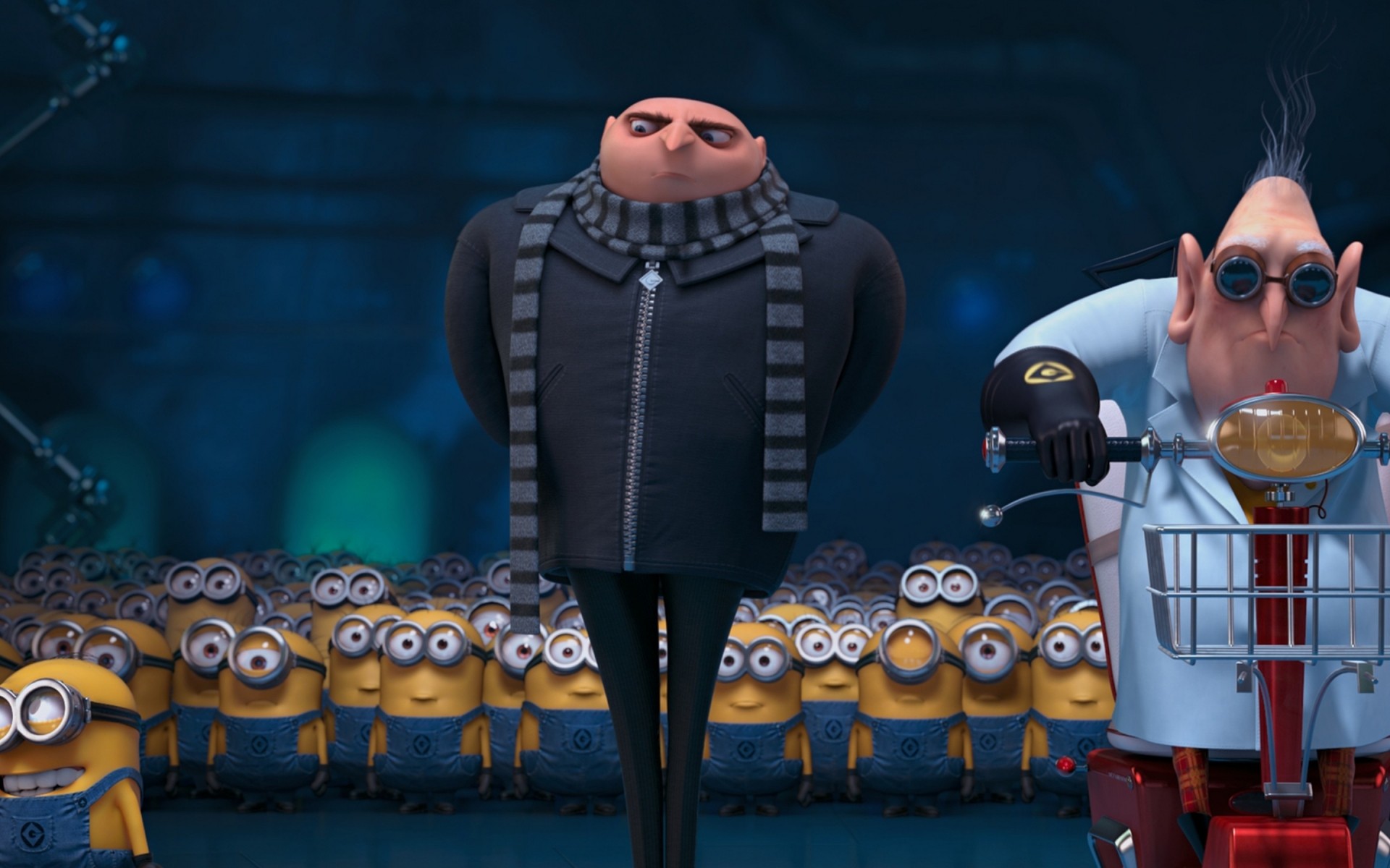 Gru steht und die Schergen schauen ihn an