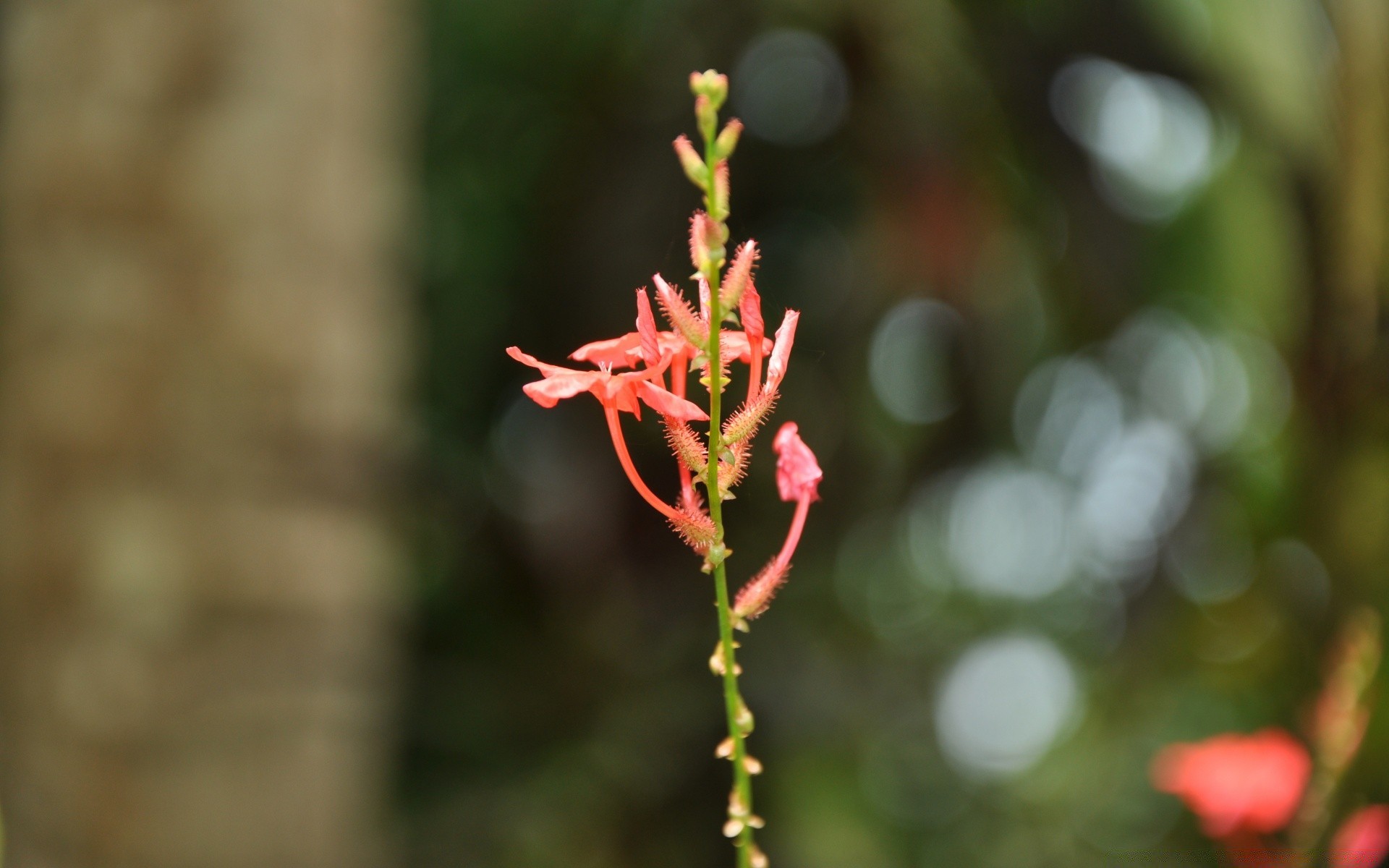 Ungewöhnliche rosa Blüten an einem langen Stiel