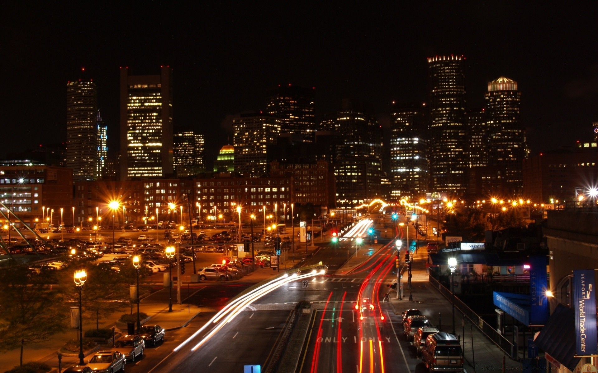 Eine große Stadt in der Nähe des Ozeans in Lichtern