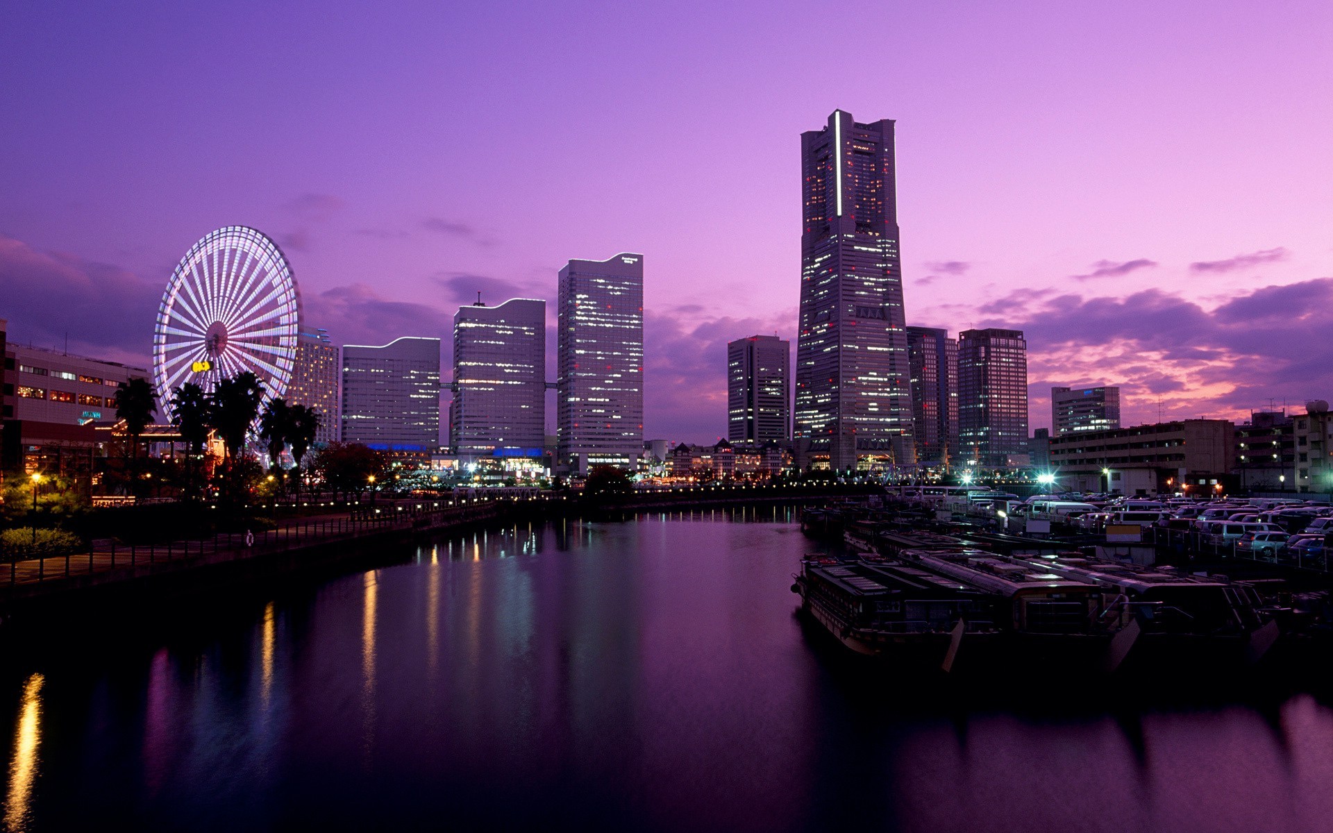 Eine große Stadt in einem violetten Farbton