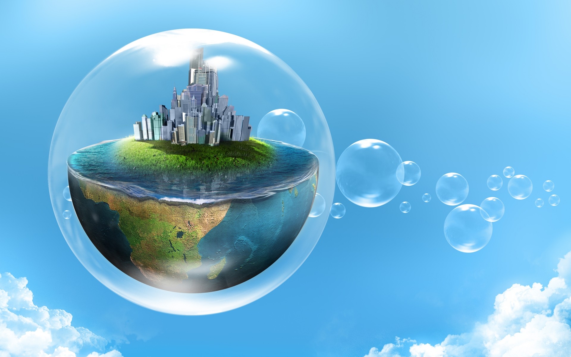 Ein kleines Land in einer Seifenblase