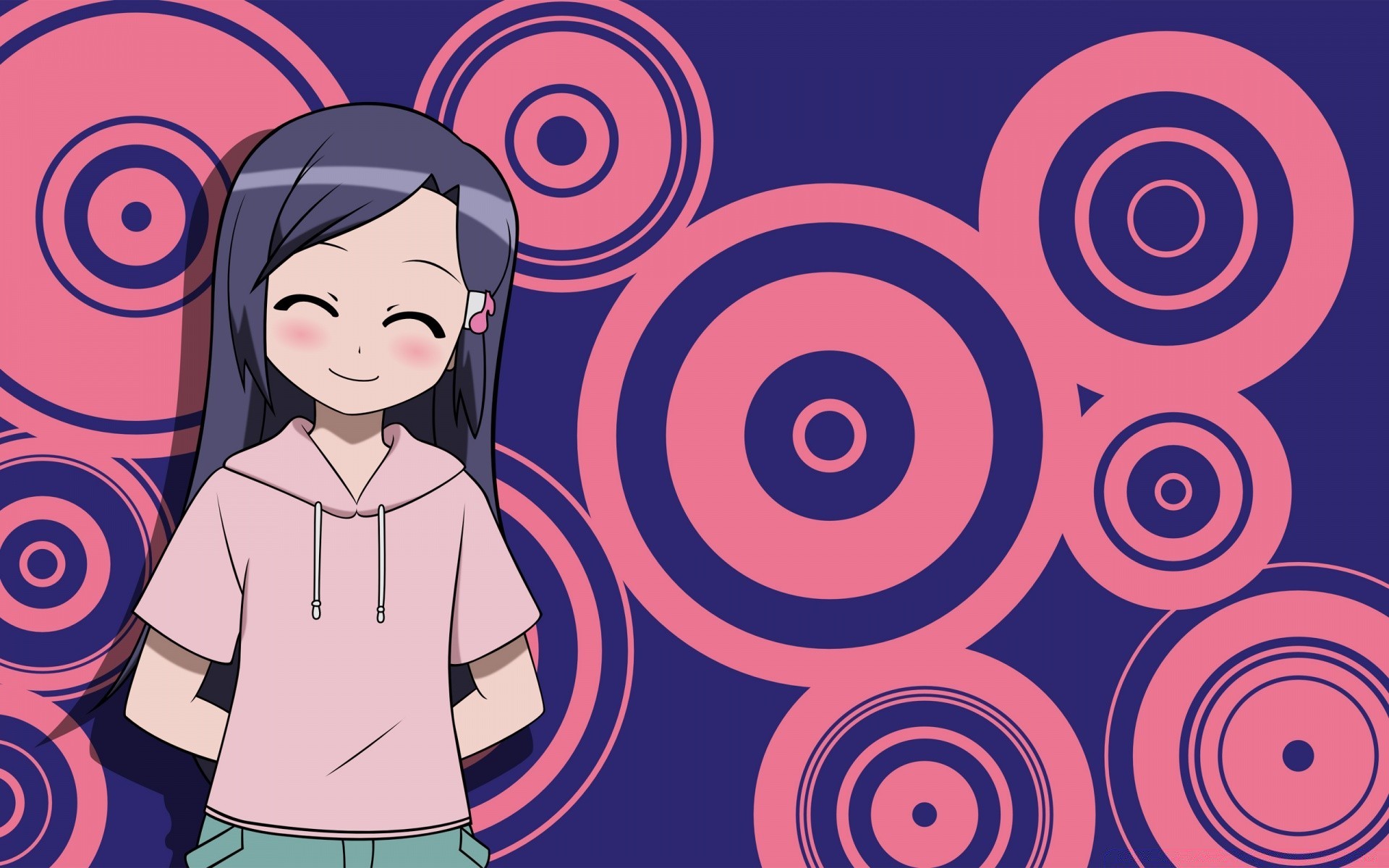 Abbildung eines anime-mädchens auf einem hintergrund von kreisenAbbildung eines Anime-Mädchens auf einem Hintergrund von Kreisen