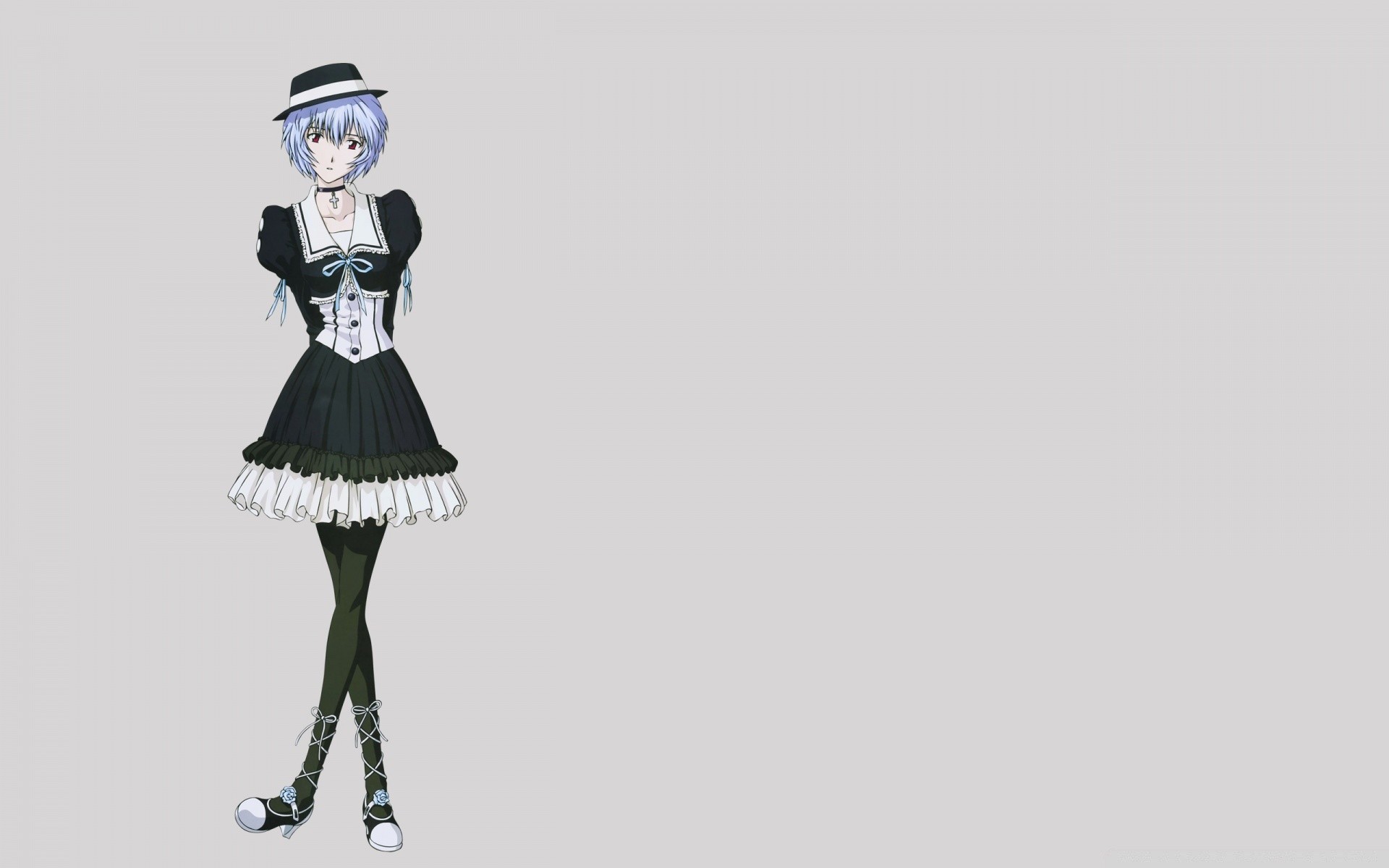 Anime Mädchen in Uniform auf grauem Hintergrund