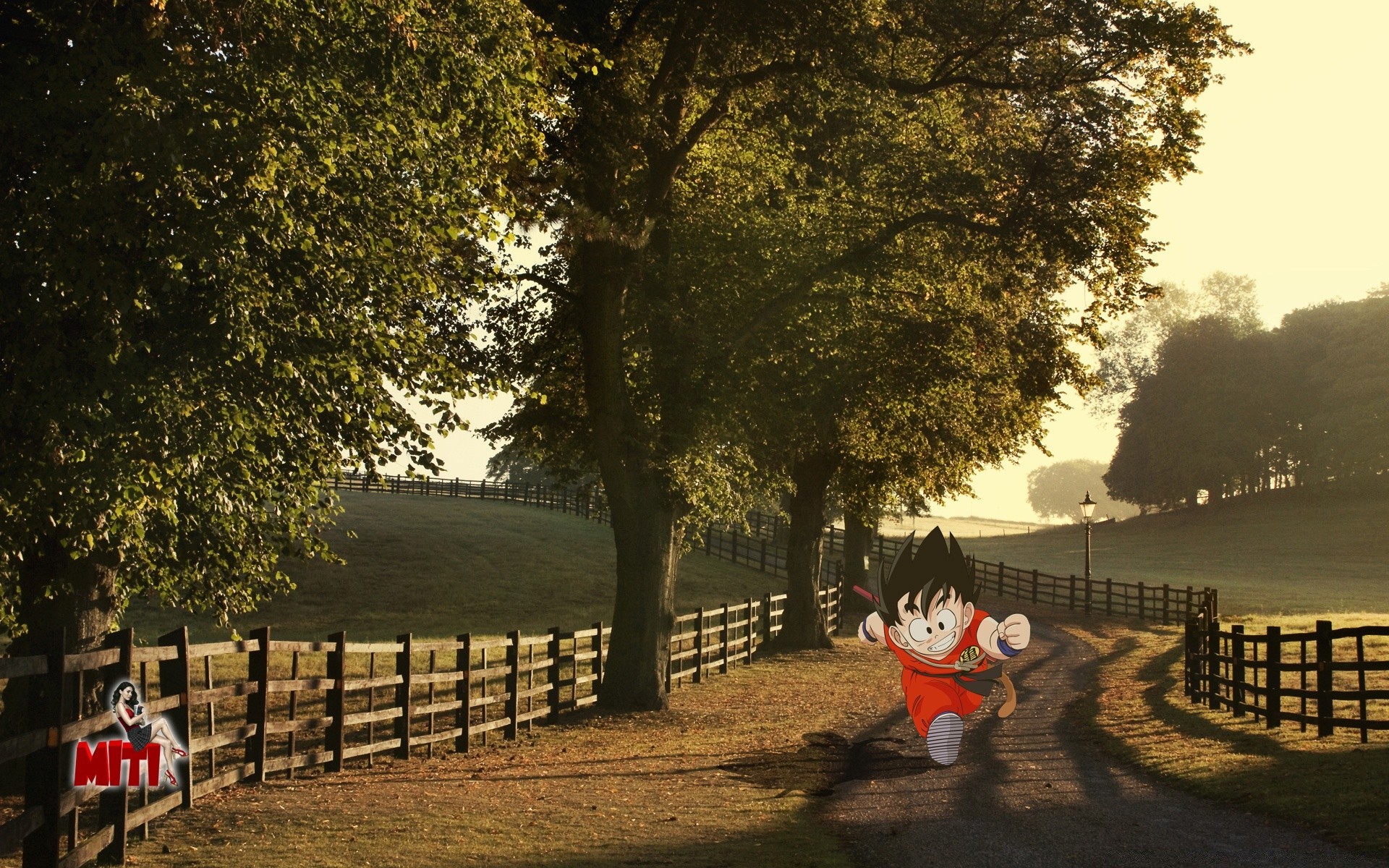 Anime-Charakter läuft auf der Straße mit Zäunen