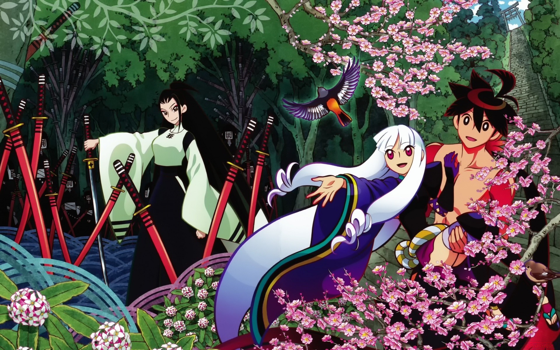 Mädchen mit Kätzchen auf dem Rücken. Anime