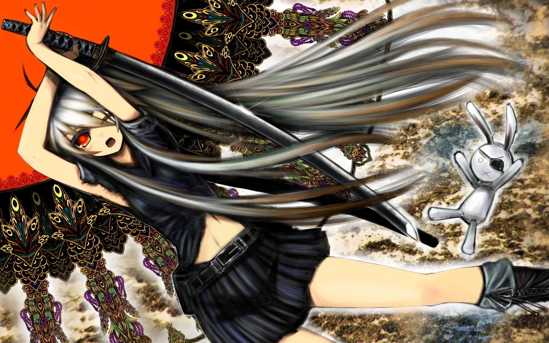Anime Tiere auf Stein Desktop-Illustration