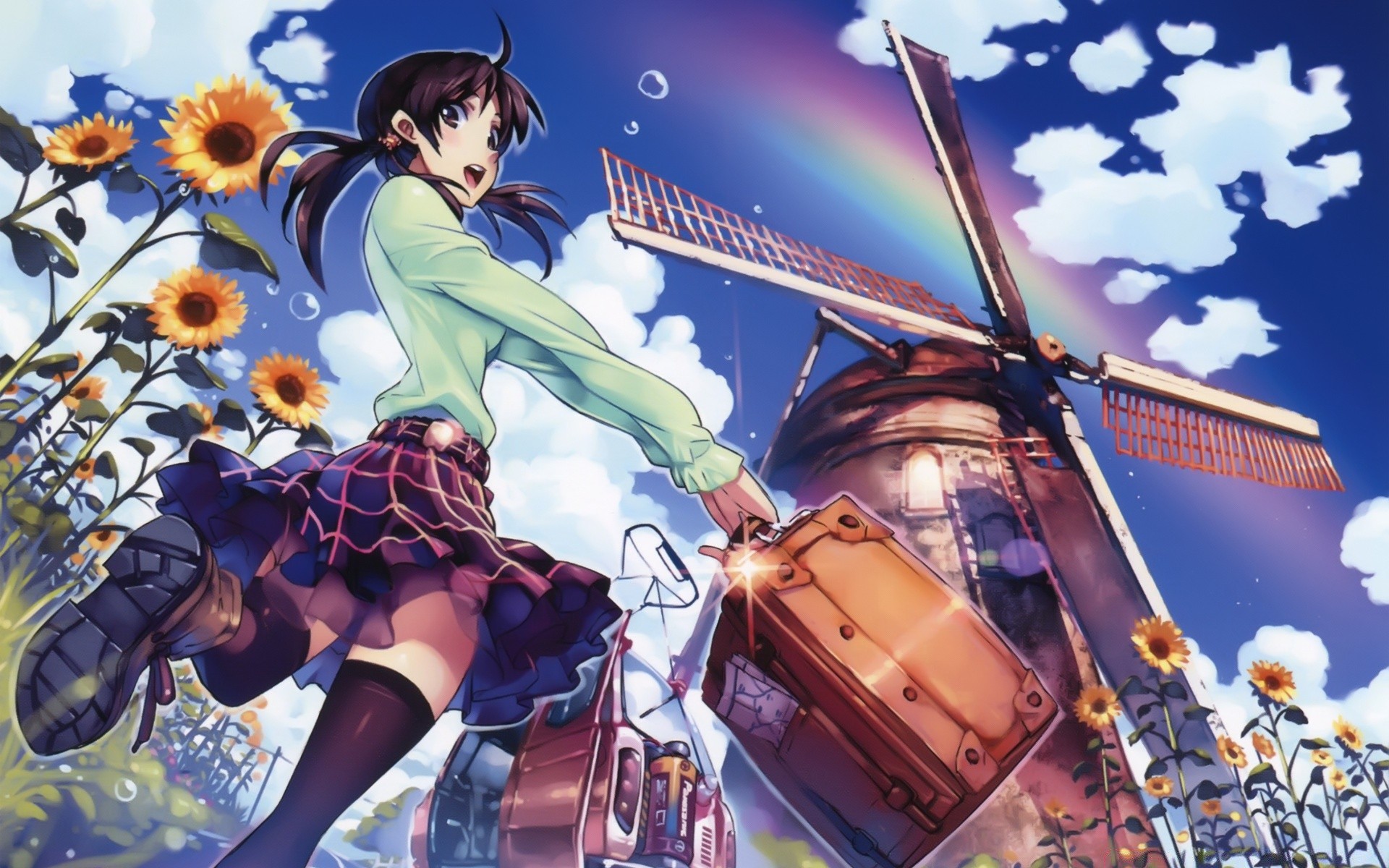 Zeichnung eines Anime-Mädchens auf gelbem Hintergrund für den Desktop
