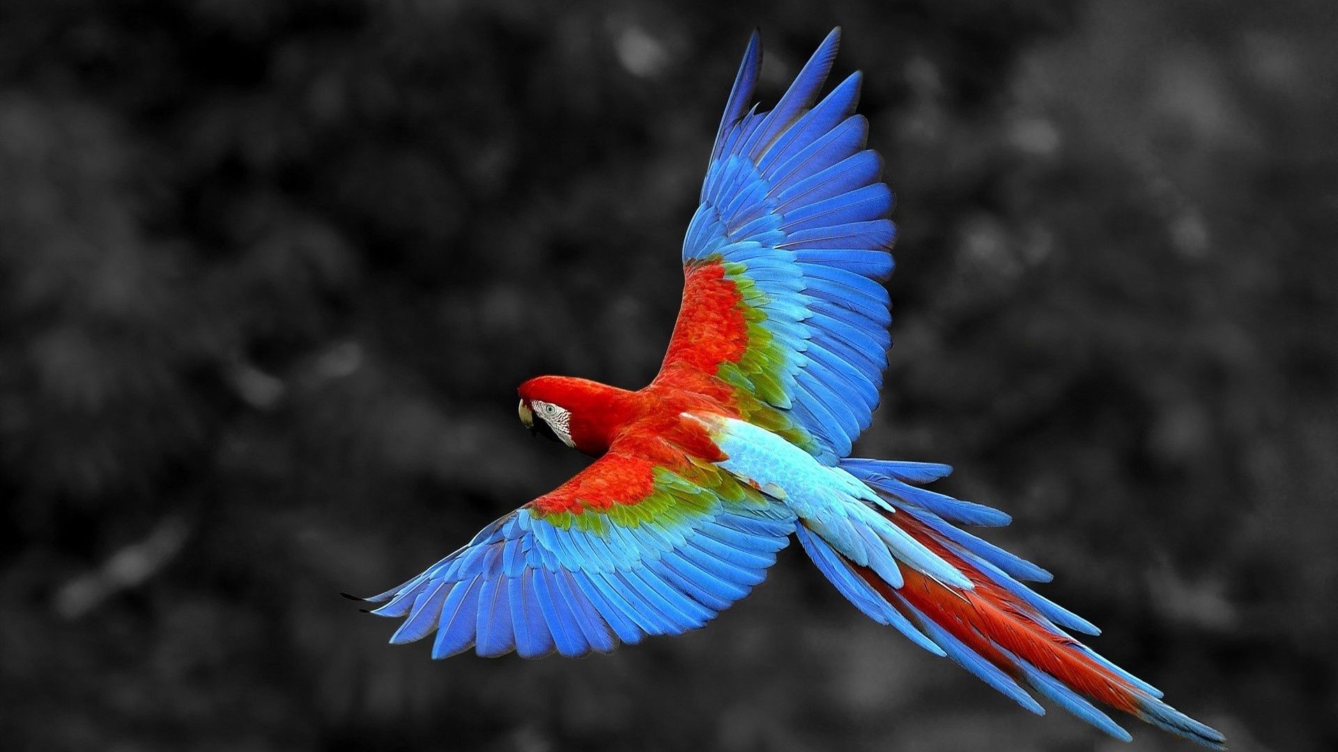 Heller Vogel des Paradieses im Flug auf dunklem Hintergrund