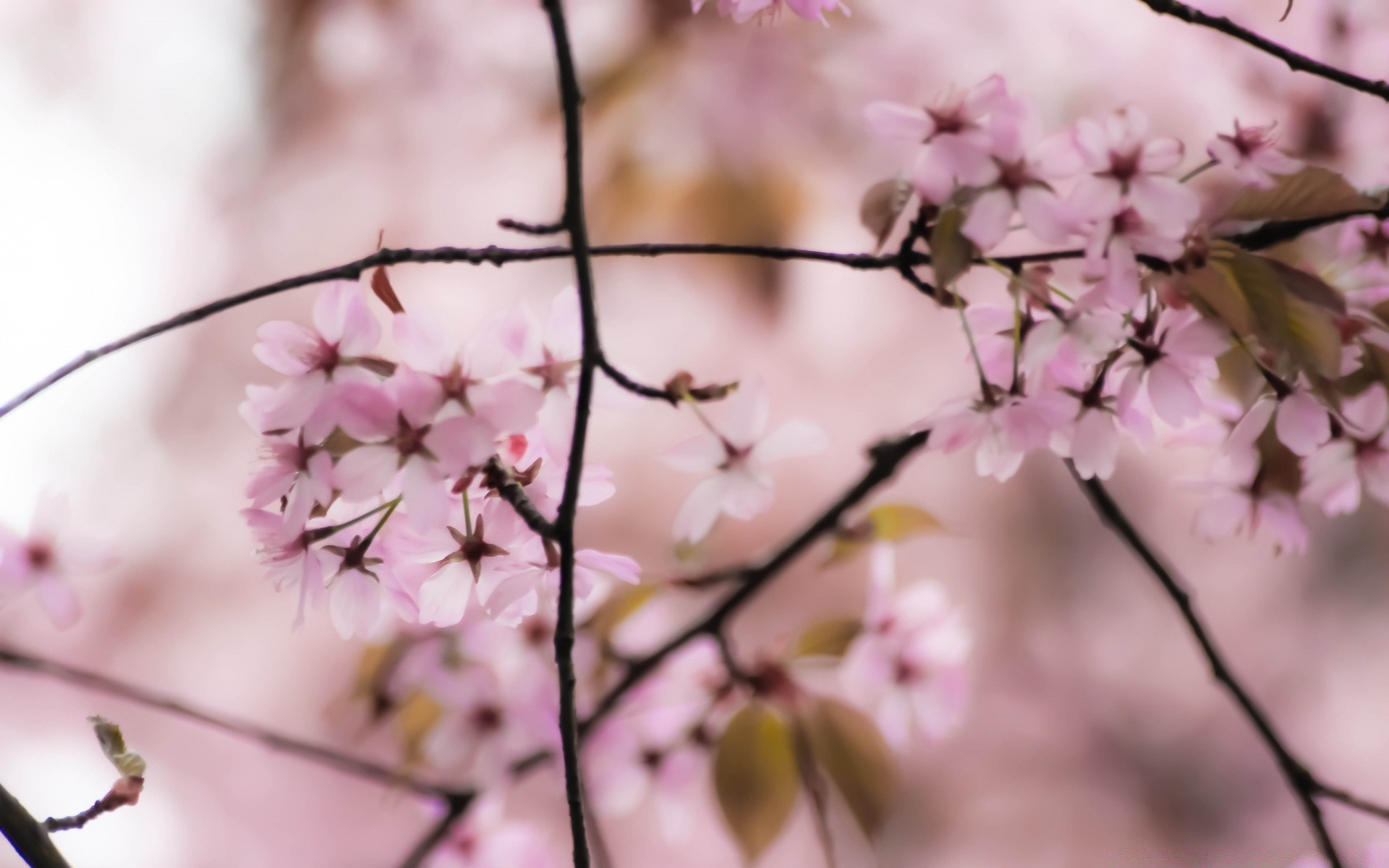 Kirschblüte auf einem Zweig auf Himmelshintergrund