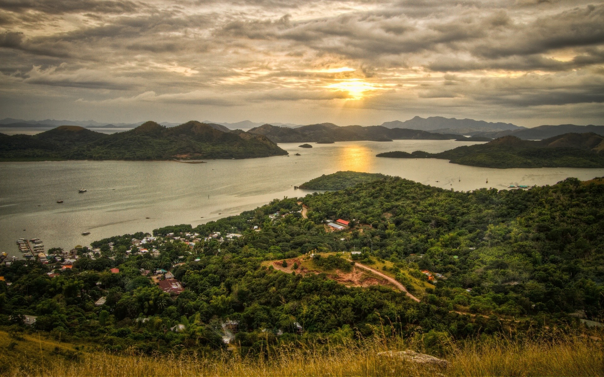 Sonne durch die Wolken bei Sonnenuntergang