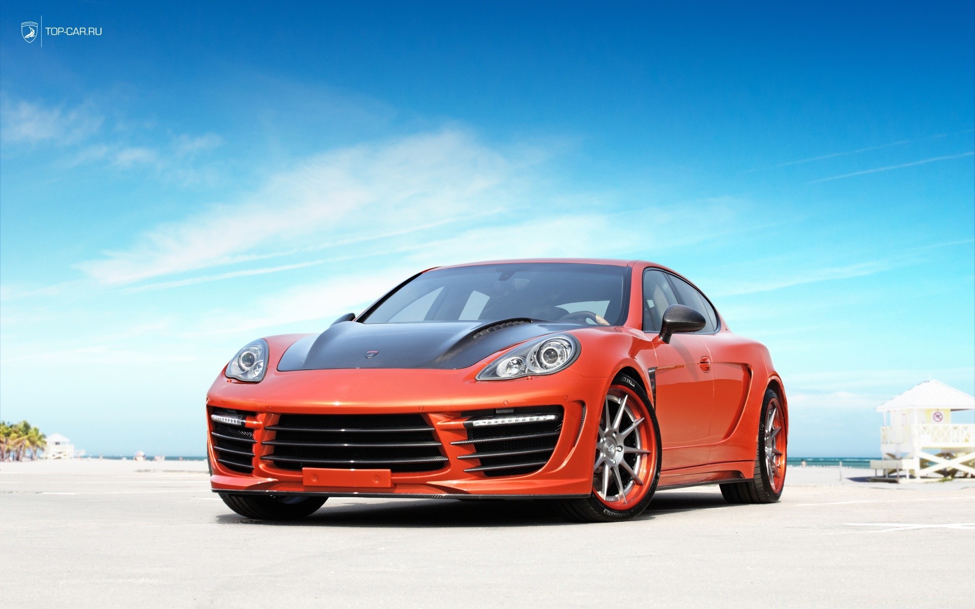 Orange Porsche am Strand