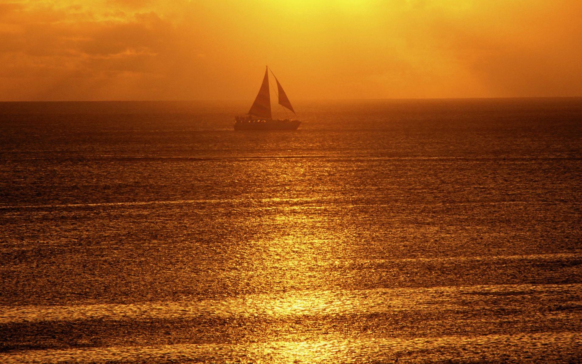 Sonnenuntergang auf der Wasseroberfläche Segel