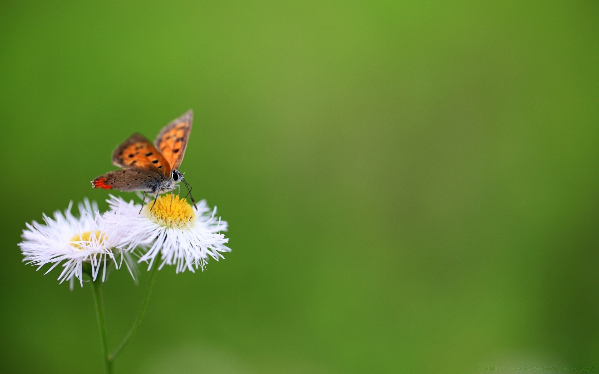 Schmetterling sitzt auf einem grünen Hintergrund der Blume